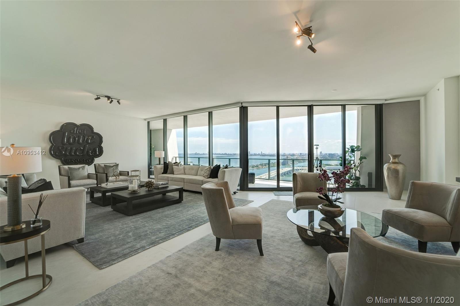 One thousand Museum, a triumphant expression of great design by legendary architect Zaha Hadid. This magnificent architectural landmark is Miami's most iconic building with only 84 impeccable curated homes offering an unprecedented level of white glove service and amenities. This residence is a Half floor featuring a flow through floor plan with unobstructed Biscayne Bay and Atlantic Ocean views including the port of Miami and cruise ships. This 4744 sf of pure modern luxury consists of 4 beds, 5.5 baths, including a beautiful Master suite as well as its large terrace off the great room.