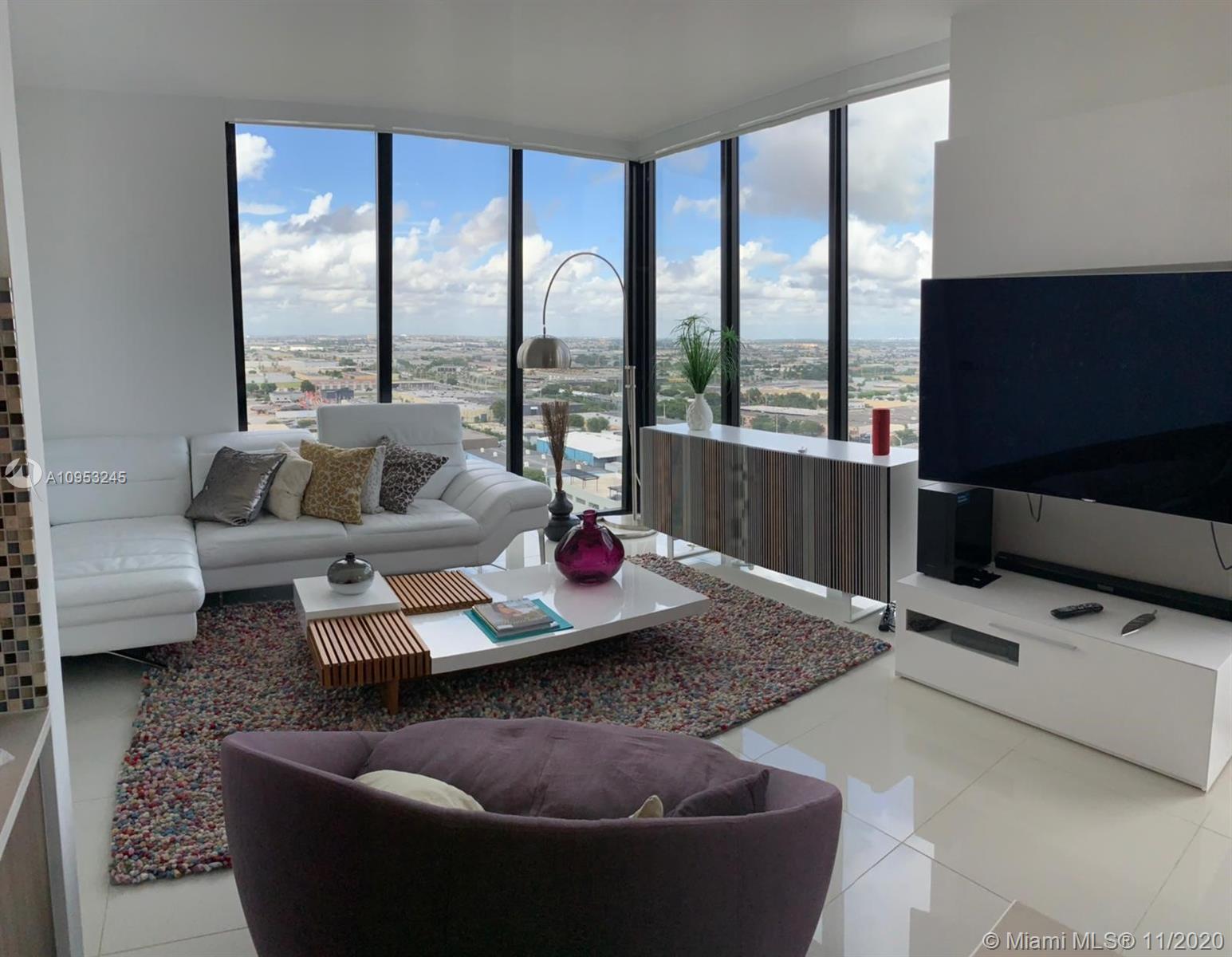 High rise luxury apartment 2 bedrooms 2 bathrooms in the heart of Downtown Doral, panoramic view of the city, modern kitchen, stainless steel appliances, porcelain floors, impact windows and doors, blinds, 1 assigned parking space, valet parking, 24 hours security, attendance lobby, great amenities; infinity pool, sauna, massage room, exercise room, children play room, business meeting room, entertainment room with a pool table. Walking distance to fine restaurants, shops, Publix and A+ schools. Close to Mayor Highways, Miami International Airport and the Beach. Water, basic cable and basic internet is included in the association fees