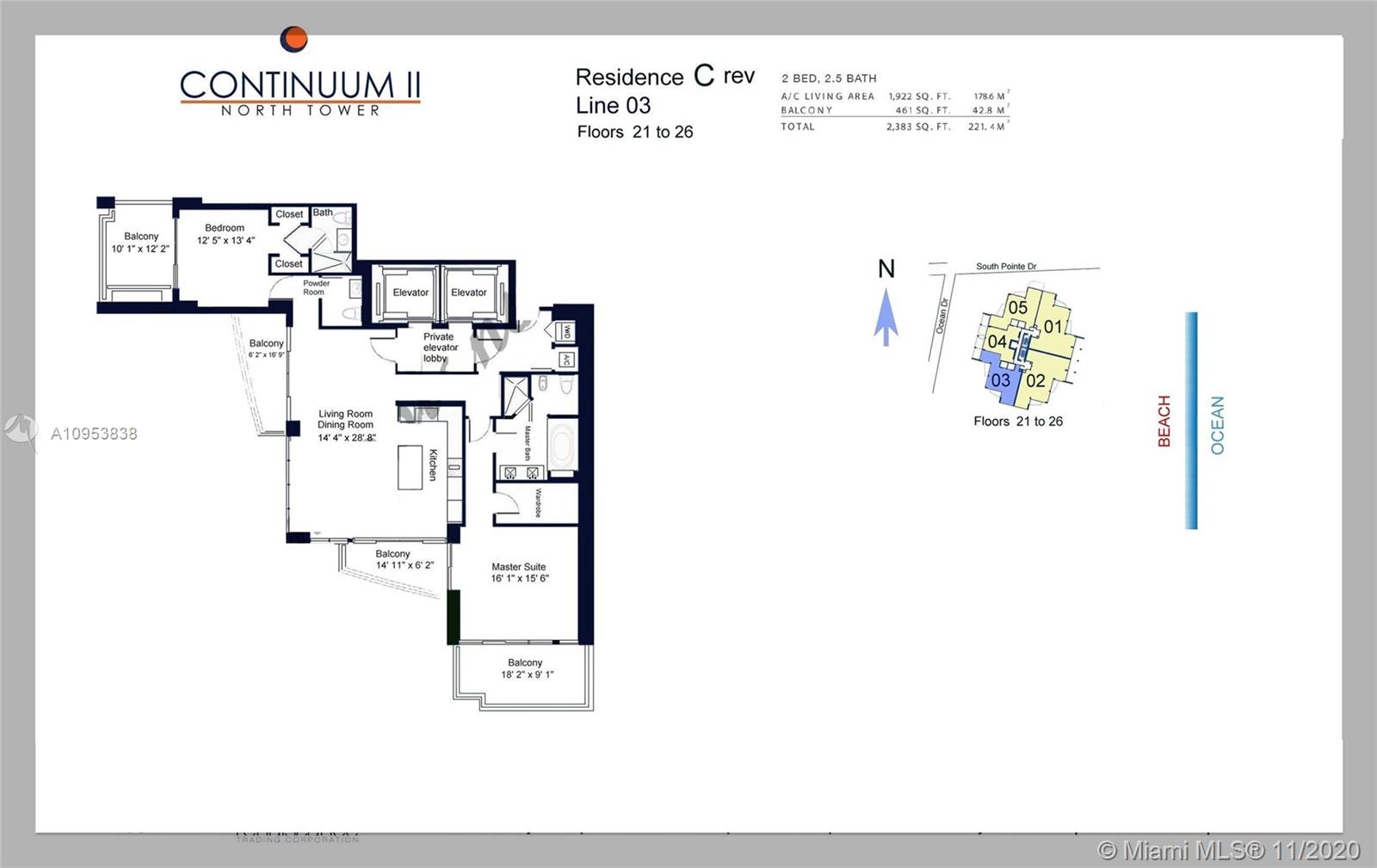 This large remodeled 2 bedroom home at The Continuum (Residence C) sprawls 1,922 square feet (179 sqm) of interior space, coupled with 4 terraces covering 461 square feet (42.8 sqm). The Master suite is on the South West corner of the residence with a large balcony as well as access to the Living room balcony; 1 of 4 total. The large Guest suite faces West with beautiful sunset views. This home is being offered fully furnished as it is presented with the exception of 2 pieces of artwork. Ready to move into! Located in the sought after South Of Fifth enclave, the Continuum is the only private gated condominium development in Miami Beach; sprawling 12 acres of private gardens, pools and fountains at the southernmost tip of Miami Beach where the Atlantic Ocean meets Biscayne Bay harbor.