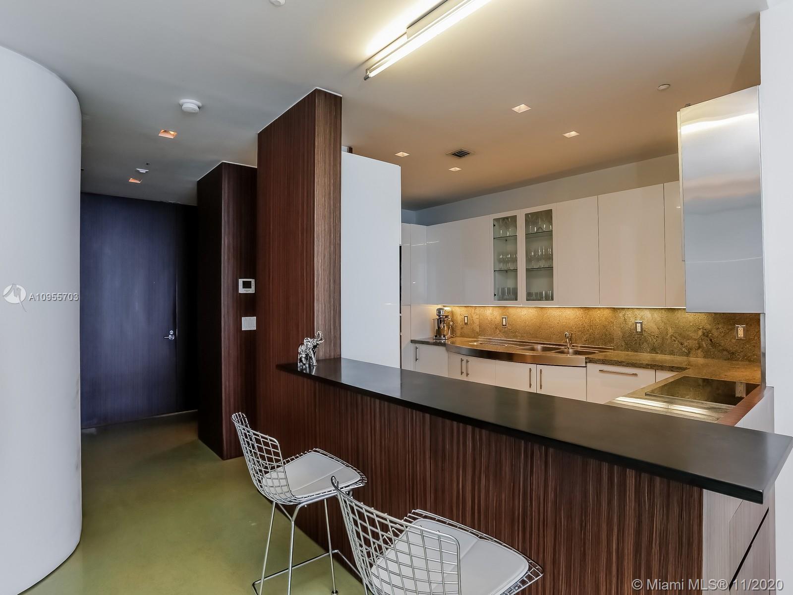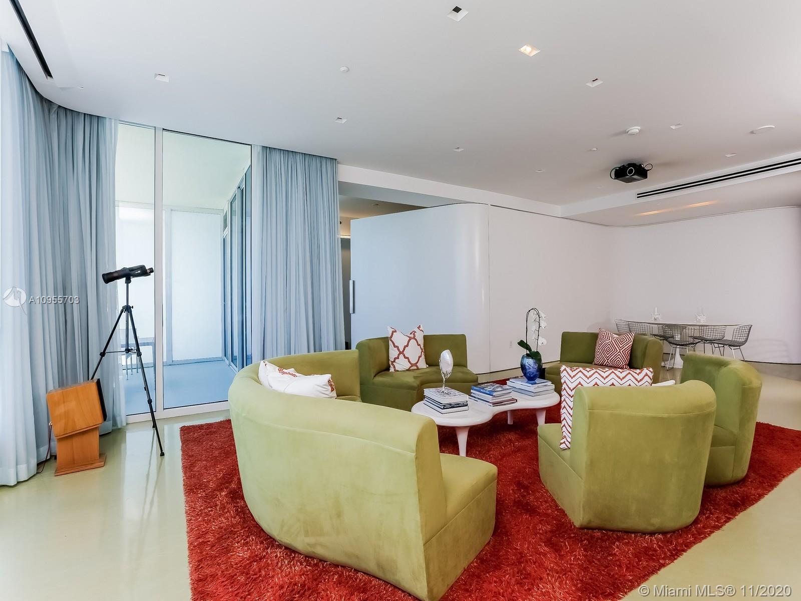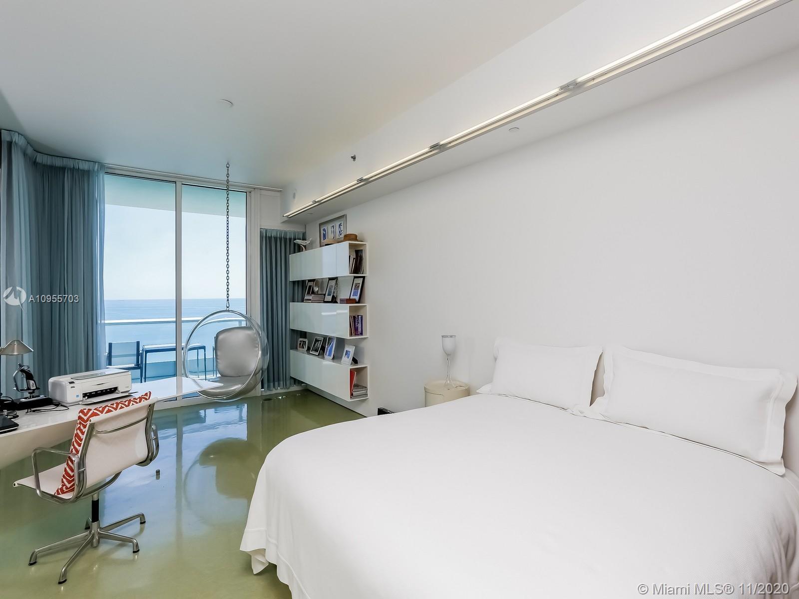 Award winning unit. Completely designed by New York's Acclaimed Slade Architecture. One of a kind unit boasts custom walls, cabinetry in whitelacquer. Floors with hints of blue and green, and beautifully furnished. The second bedroom has a retractable wall that provides the ultimate in versatility. Direct views of the ocean and infinite views of the world famous Beach.