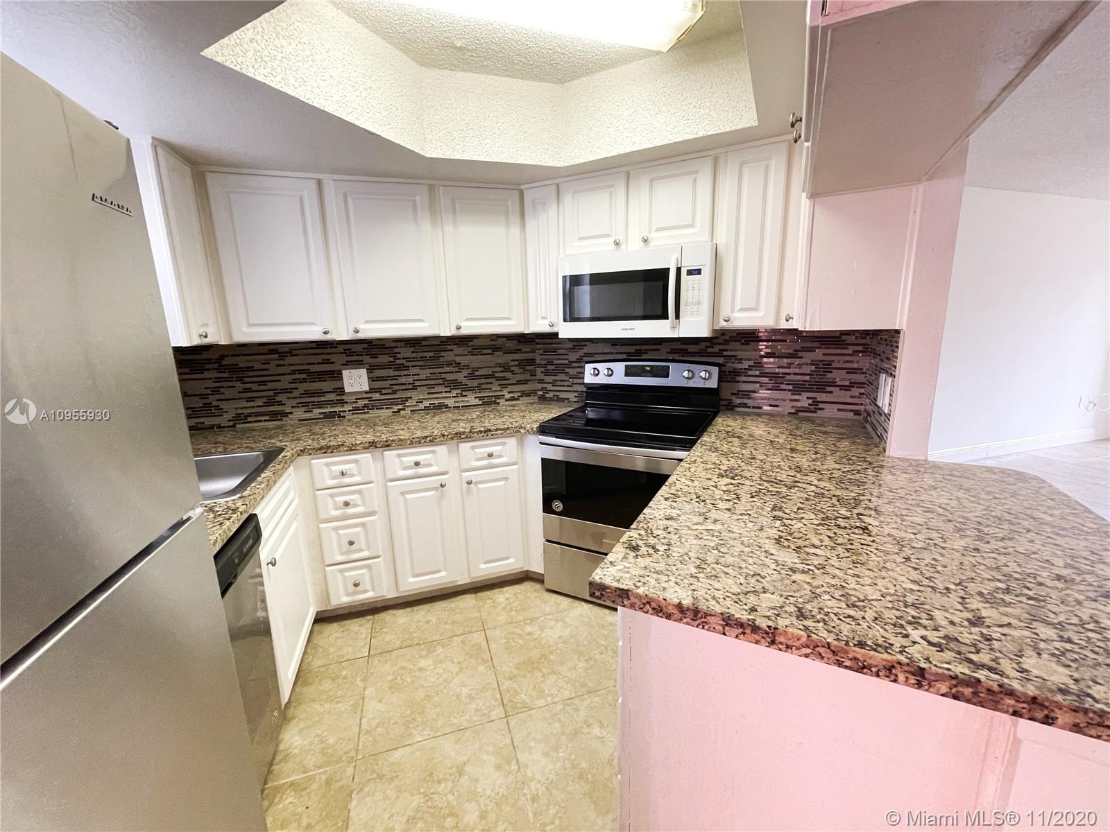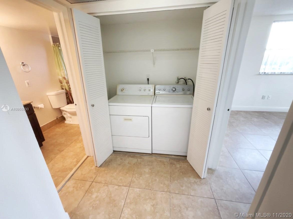 The BIGGEST 1Bed/1Bath model in Las Vistas Condo. Tile floors throughout, kitchen cabinetry recently renovated, stainless steel appliances, spacious fully renovated bathroom with walk in shower. Washer and dryer in-unit. 2 tenant parking spots with plenty guest parking. Community is gated throughout with 24/7 security at entrance. Investors welcome: owner also has 1 other off market unit with identical floor plan. Association is low for everything that it includes: pools, tennis and racket ball courts, gym and security. Centrally located in Doral: minutes from Cityplace, Palmetto Highway, Publix, Downtown Doral, the BEST Doral Schools and more!