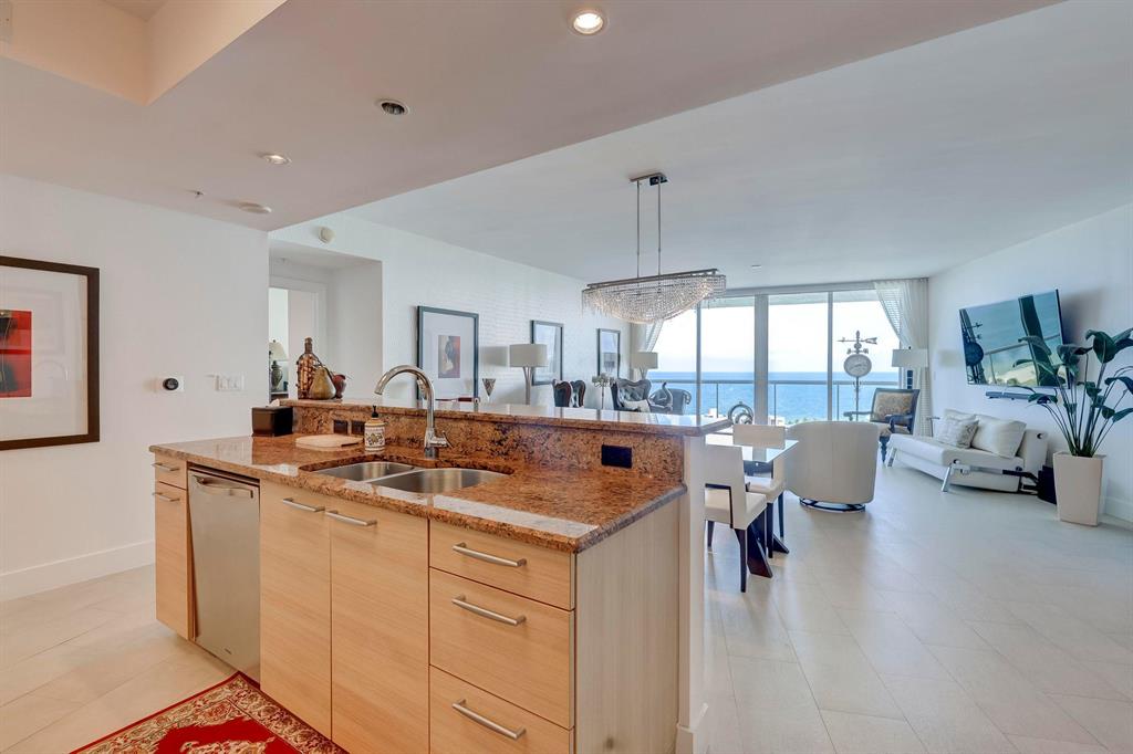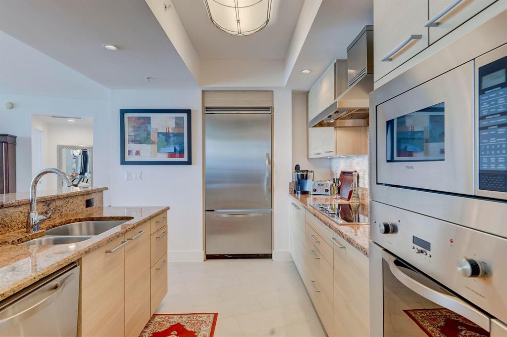 Glamorous, furnished, oceanview Sky Residence with two deeded garage parking spaces.The elevator conveniently opens right up into the foyer of your condo! Beautifully decorated and maintained with gorgeous ocean views. The 364 sq ft terrace is the perfect spot to sip your morning coffee and watch the sunrise. Almost 2,000 square feet of high end finishes including Poggenpohl cabinetry and Viking appliances. Designer tile throughout and motorized blinds in every room. The luxurious amenities in the Plaza at Oceanside are some of the best in South Florida - pool, hot tub, summer kitchen, tennis, gym, media room, wine vault, library and golf simulator. This condo is the one.