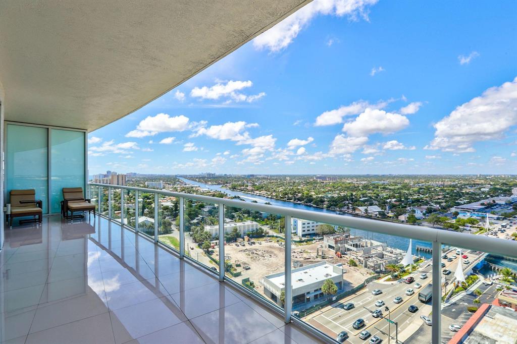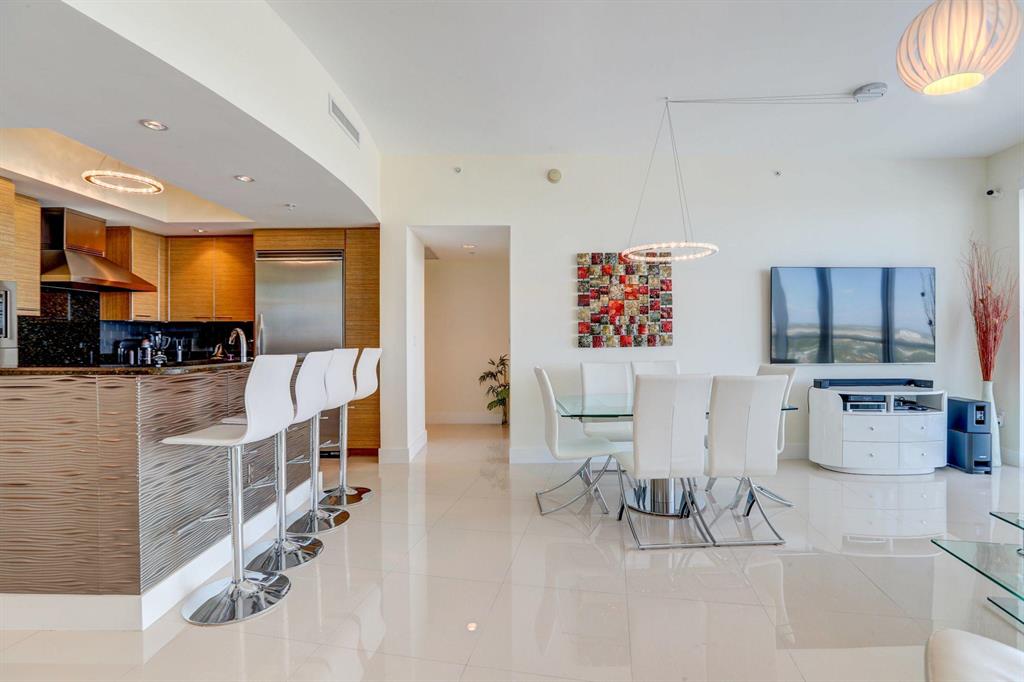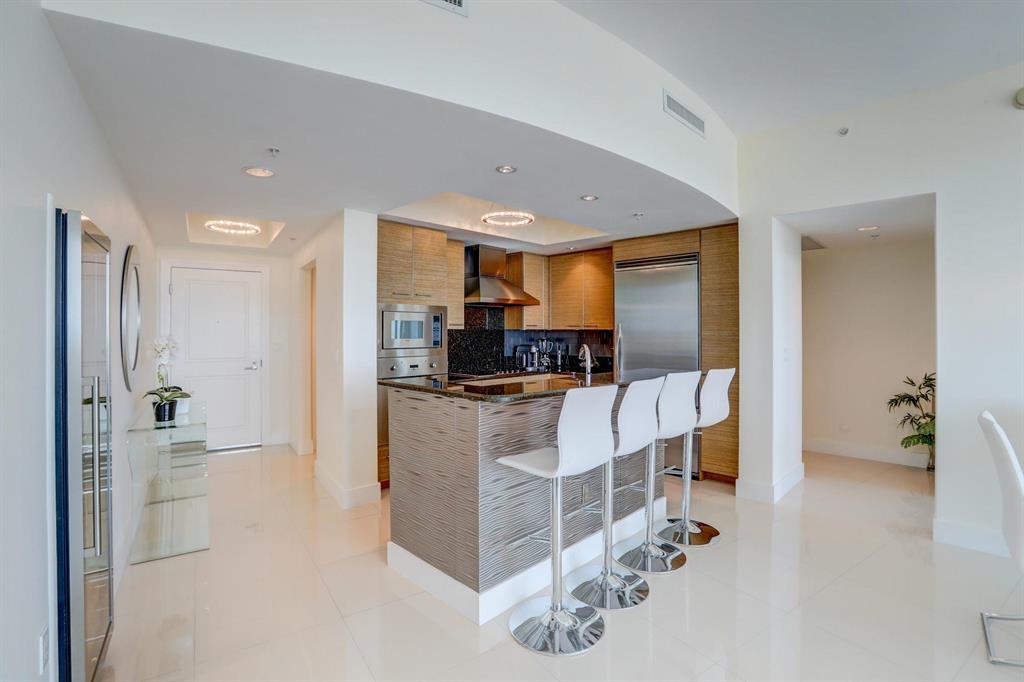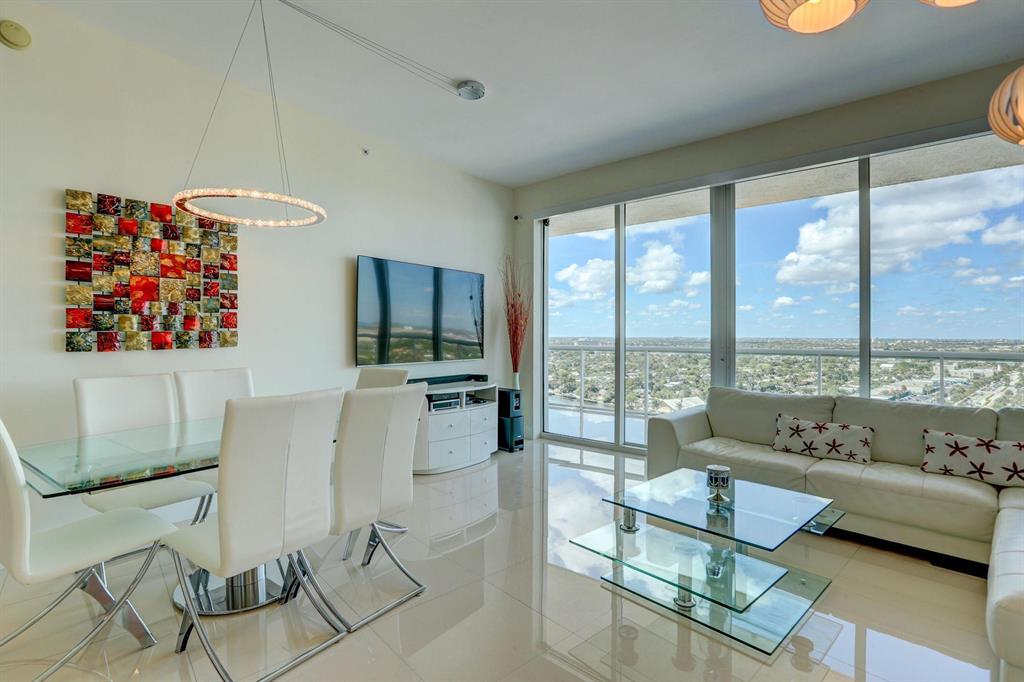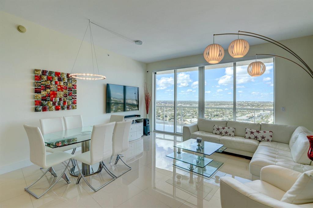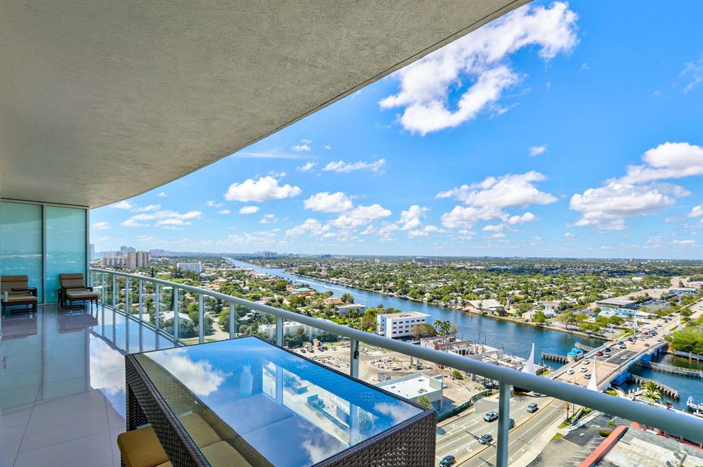 Luxurious, fully furnished sky residence on the 17th floor with 2 deeded garage parking spaces! Impeccably maintained and ready for you to host happy hour while the sun sets over the Intercoastal. High end European kitchen with Viking appliances, Poggenpohl cabinetry, granite counter tops and a full sized wine cooler. Amazing views of the Intercoastal and ocean from your 48' covered balcony. The entire unit boasts polished travertine floors making it light and bright. Motorized blinds in all rooms add a level of luxury to this condo. The amenities in the Plaza at Oceanside are second to none - pool, hot tub, outdoor summer kitchens, tennis, gym, media room, wine vault and golf simulator. One bike is included so get ready to explore the area when you move in!! This condo is perfection.