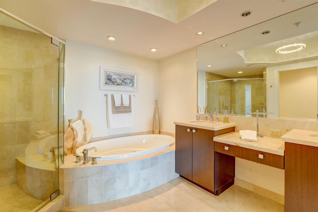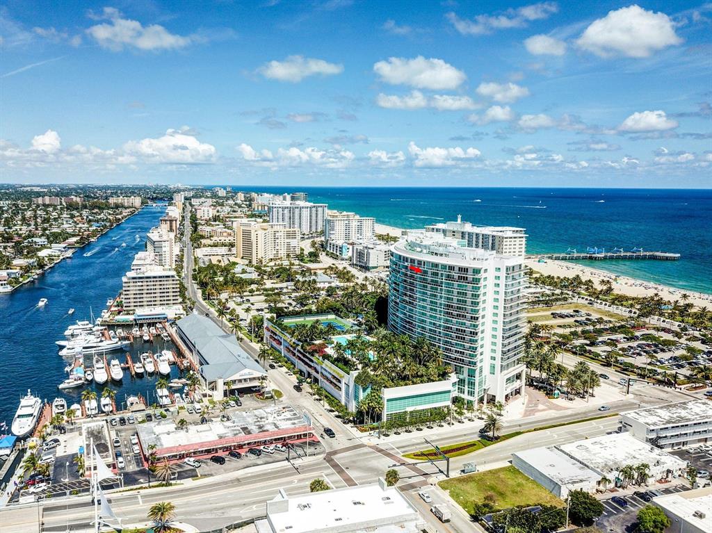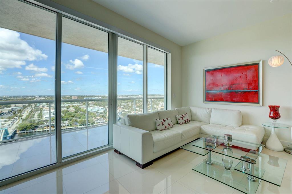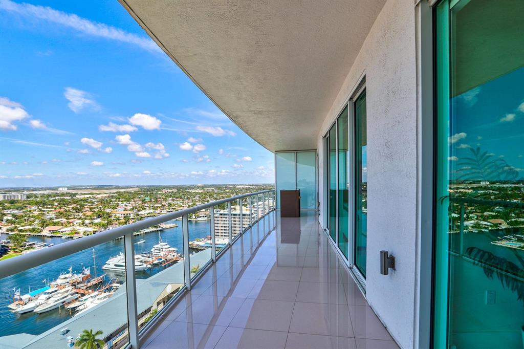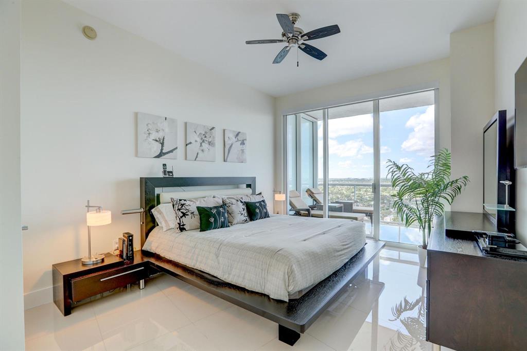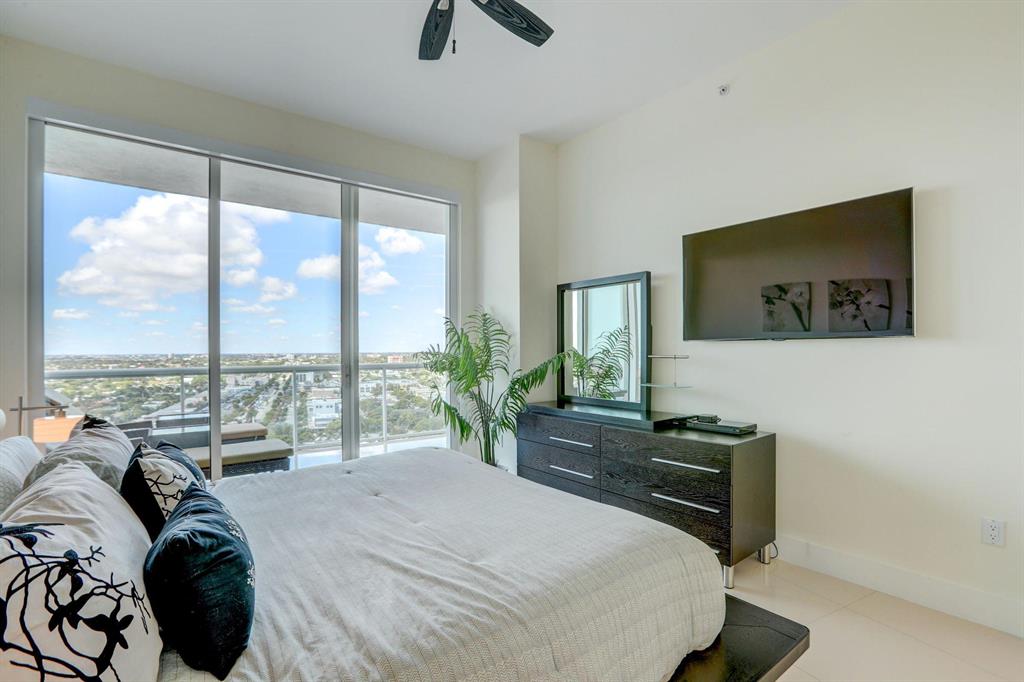 Luxurious, fully furnished sky residence on the 17th floor with 2 deeded garage parking spaces! Impeccably maintained and ready for you to host happy hour while the sun sets over the Intercoastal. High end European kitchen with Viking appliances, Poggenpohl cabinetry, granite counter tops and a full sized wine cooler. Amazing views of the Intercoastal and ocean from your 48' covered balcony. The entire unit boasts polished travertine floors making it light and bright. Motorized blinds in all rooms add a level of luxury to this condo. The amenities in the Plaza at Oceanside are second to none - pool, hot tub, outdoor summer kitchens, tennis, gym, media room, wine vault and golf simulator. One bike is included so get ready to explore the area when you move in!! This condo is perfection.