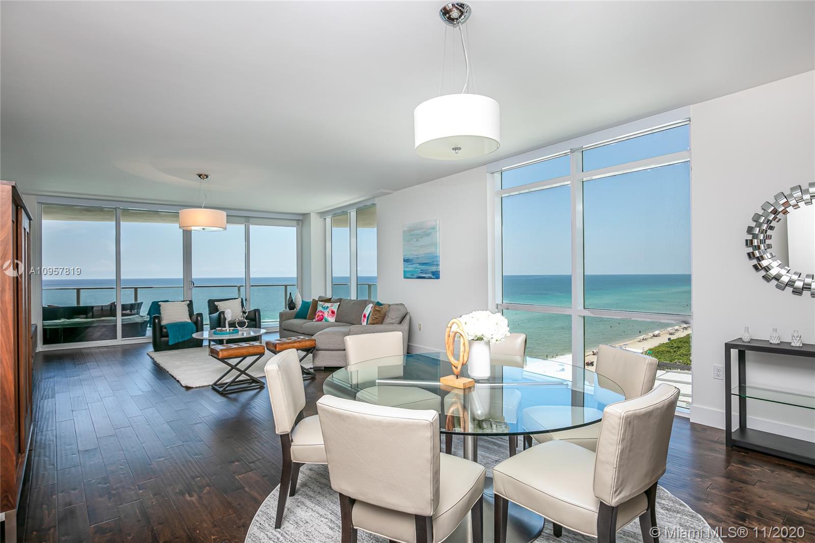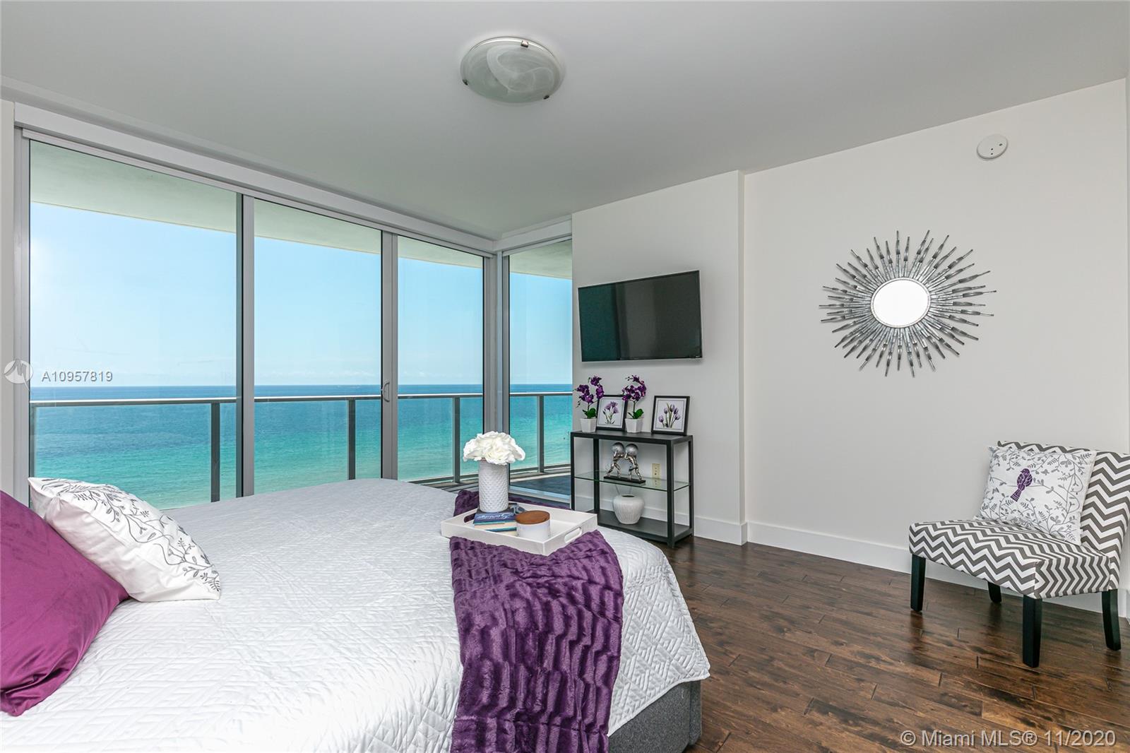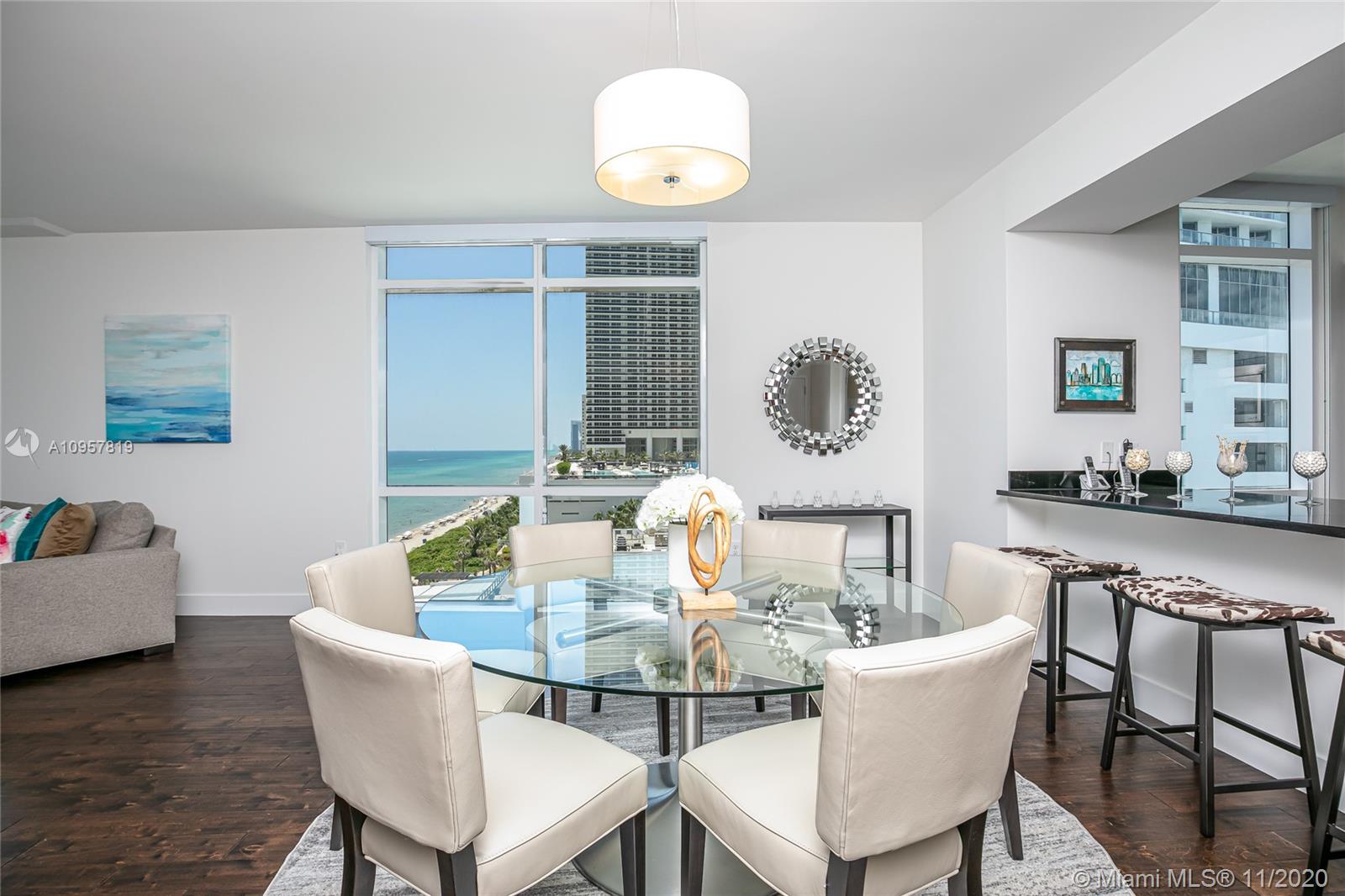 Fall in love with this gorgeous 3 bd, 3 1/2 bath + a den/office residence. Floor to ceiling impact windows, high-end appliances and finishes throughout, smart-home features and designer touches make this the ultimate vacation or full-time residence for the most sophisticated buyer. Enjoy the sunrise from your private oversized terrace and the master suite. Spacious split floor plan with plenty of closet space. Great value in the famous Apogee Beach Condo - a luxury, boutique ocean-front complex with 5-star amenities: 24/7 concierge and valet service, friendly staff who know your name, professional management team, full beach service, state of the art gym featuring Peloton Bikes, sauna and massage rooms, elegant pool area, private lounge, billiards room and more.