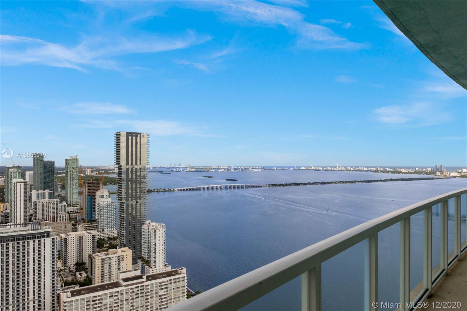 Best PH unit in Edgewater. Direct Bay views as far as the eye can see from this 50th floor PH. Almost 2000 sq ft 3 bd 2.5 bth. 18"x24" limestone tile throughout. Huge master bedroom. Big master bathroom with his/hers sinks, shower and tub. Open kitchen, washer/Dryer inside unit. 2 garaged parking spaces on the first floor just feet away from lobby entrance. Two pools, party room, Gym, Grocery store, dentist office and hair salon in lobby. Valet, 24 hr security, front desk attendant and secured elevators. Only 6 units on your floor. Public Park across the street with 2 tennis courts, outdoor gym, basketball court, bike/run trail and more. Storage cage included with unit. Unit is vacant and readily available. Very easy to show. CALL LISTING AGENT