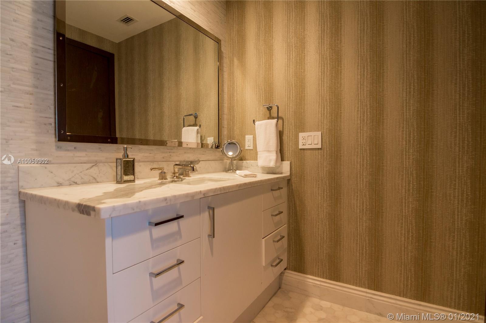 Fully renovated residence with stunning intracoastal views. A private elevator landing opens to a spacious 2,059 sqft living space with elegant travertine flooring throughout. Presenting 2 bedrooms, 3 full baths and 1 half bath, this corner unit offers a chef-inspired kitchen, granite counter tops and back splash, Sub Zero and Miele appliances. The master bedroom features beautiful customized closets, his & her baths, dual sinks and spa tub. Floor to ceiling windows surround an oversized wrap around private terrace perfect for relaxing or entertaining. Living Room and Master feature electric blinds. The full service Bath Club offers the ultimate in luxury living with two clay tennis courts, pool, beach access, hot tub, gym, spa and restaurant service.