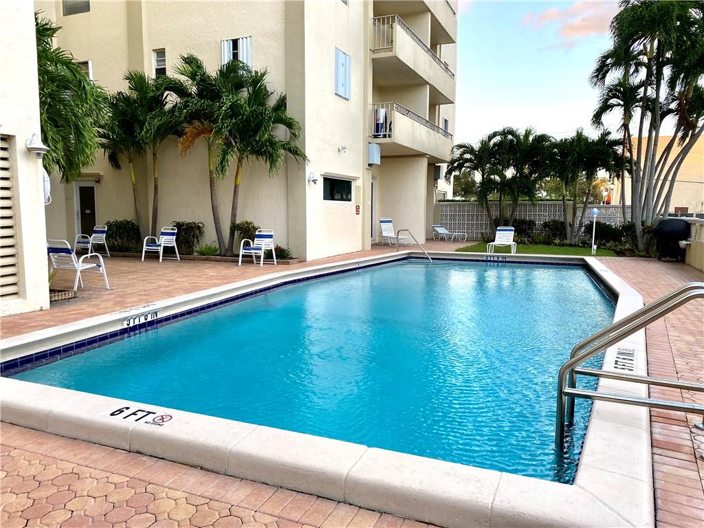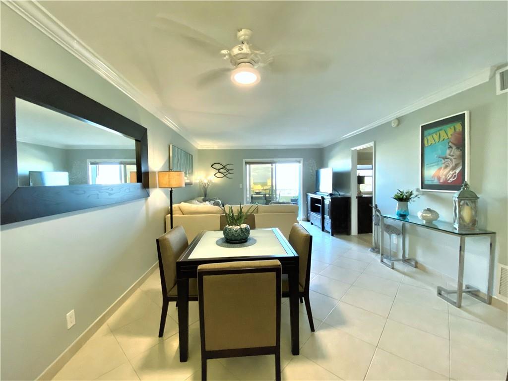 SPECTACULAR VIEWS! From this top floor corner apartment. Enjoy the ocean breeze while gazing at the Middle River, Intracoastal waterway & ocean! This renovated apartment is Move in ready! Hurricane Impact Windows and door. Porcelain tile flooring through-out. Kitchen features granite countertops, mosaic tile backsplash, stainless appliances & wood cabinets. New custom fans w/ LED lighting. Smooth ceilings-no popcorn. New crown molding. Updated bathroom, walk-in closet. Open Balcony, storage room. Amenities include Heated Pool, laundry, rec room, security cameras/secure lobby. Walk to shops/restaurants, Gateway cinema and the Beach! Resort style living! This apartment has a Rec Lease.