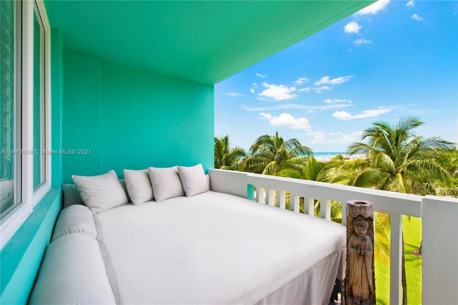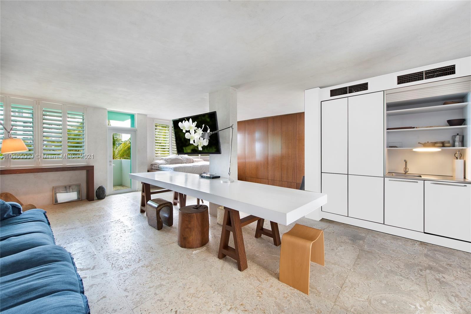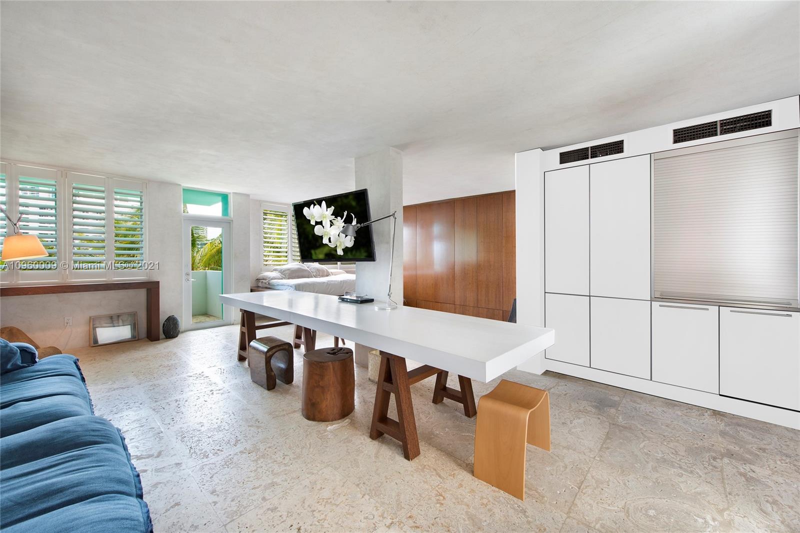 The ultimate ocean view Beach Pad on the sand on Miami Beach’s top location! No expense spared in this creative, exquisitely designed loft-like space. Custom Brazilian wood wall to wall, floor to ceiling cabinetry, natural stone floors, Bulthaup kitchen, Gaggeneau & Miele appliances, Villeroy & Boch Bathroom, impact glass windows, parking, terrace with build-in sunbed. The most esteemed boutique building that has always been home to well-known personalities in arts and design. Please Note: No children under 12 allowed to reside at building and No pets allowed.