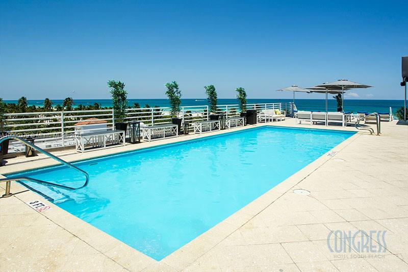 Best deal in the building! The Congress Condo Hotel unit C505 built in 2005 (the newest building in the condo) and across the street from the beach, among popular Ocean Drive restaurants and bars.? This contemporary apartment hotel unit is in turn key condition with furnishings, kitchenette, equipment, and balcony with partial ocean view. The hotel offers a rooftop terrace with swimming pool, lounge chairs, and a bar overlooking Ocean Dr and the Ocean. You can rent this unit out on a daily basis unencumbered by hotel management.