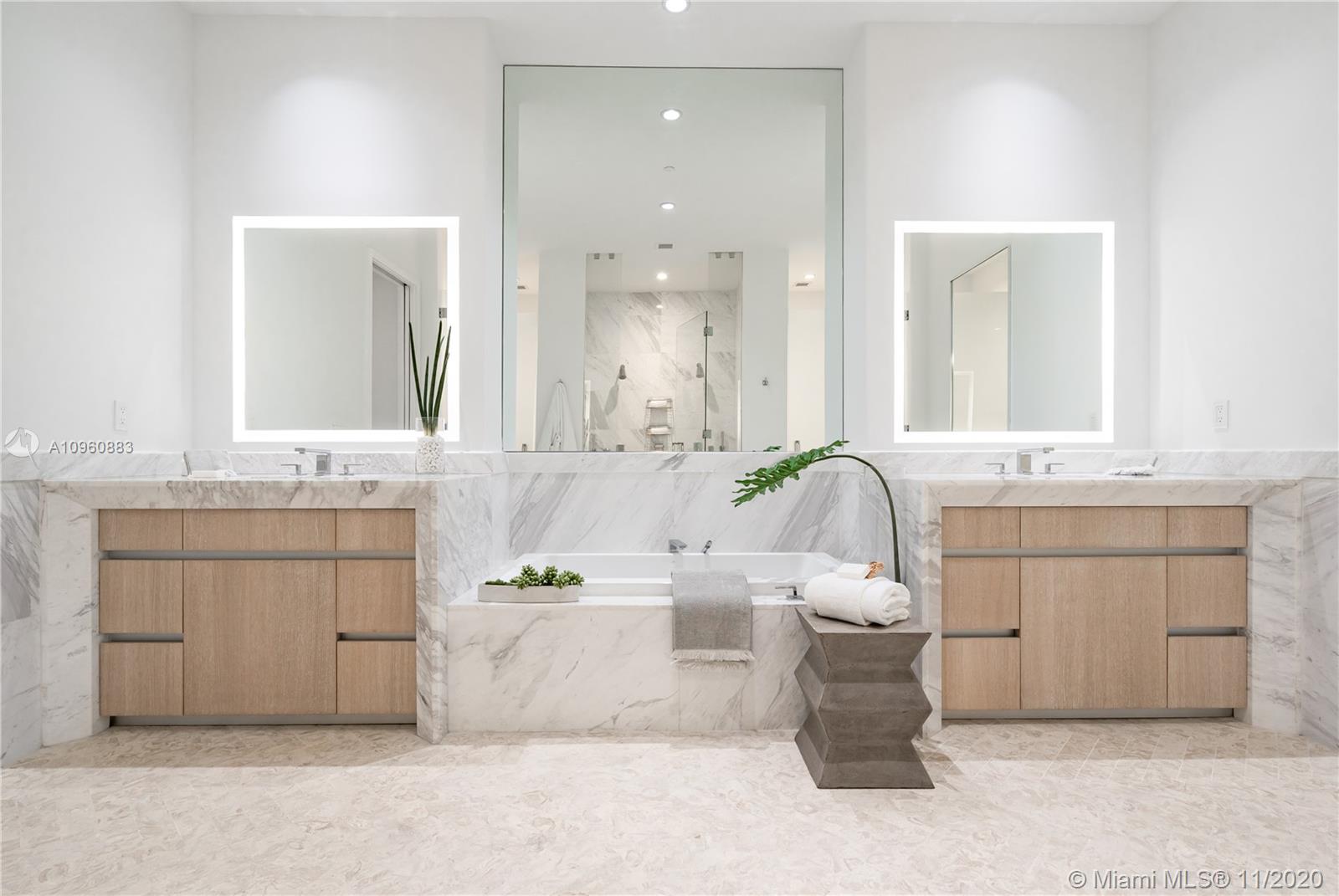 Stunning 4 Bedr + den residence in the luxurious Park Grove condo (T2) in Coconut Grove. This 3,233 SF condo offers 5.5 Baths, 12 ft ceilings, a large terrace and breathtaking views of the Biscayne Bay, Pools & Gardens. The gorgeous unit comes with a William Sofield designed kitchen and bathrooms. This unit boasts state-of-the-art finishes, marble floors, all en-suite bedrooms, his&her closets, Subzero fridge and freezer, Miele coffee machine & Wolf oven & microwave. Park Grove offers resort style services & amenities such as 24h concierge, butler service, 4 pools, main pool w/private cabanas, bay-view dining room, library, private screening room, club room, fitness center, in/outdoor yoga, outdoor event space, & wine cellar. Unit comes with a large laundry room and 2 parking spaces.