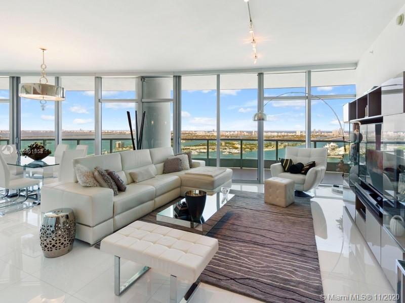 MAGNIFICENT MANSION IN THE SKY HAS IT ALL. Private Elevators open into its own lobby foyer. Walk through the entry doors and be mesmerized by Miami’s most spectacular panoramic water views. This 3 Bedroom+Den / 4 bath unit has 2 parking spaces and its own 270 sq ft A/C Storage Unit . Enjoy its modern luxury details like large white glass tiles, wide ample balconies, remote controlled Electronic Shades, A/C scent diffuser, Miel and Sub zero appliances. Located across from Downtown’s Museum Park, building’s amenities include: Doorman/ valet/ concierge services, 2 pools, palm laden sun deck, Cinema, Gym/ Spa, large party facilities. “06” unit line is building best line. Live where everyone dreams they want to be.