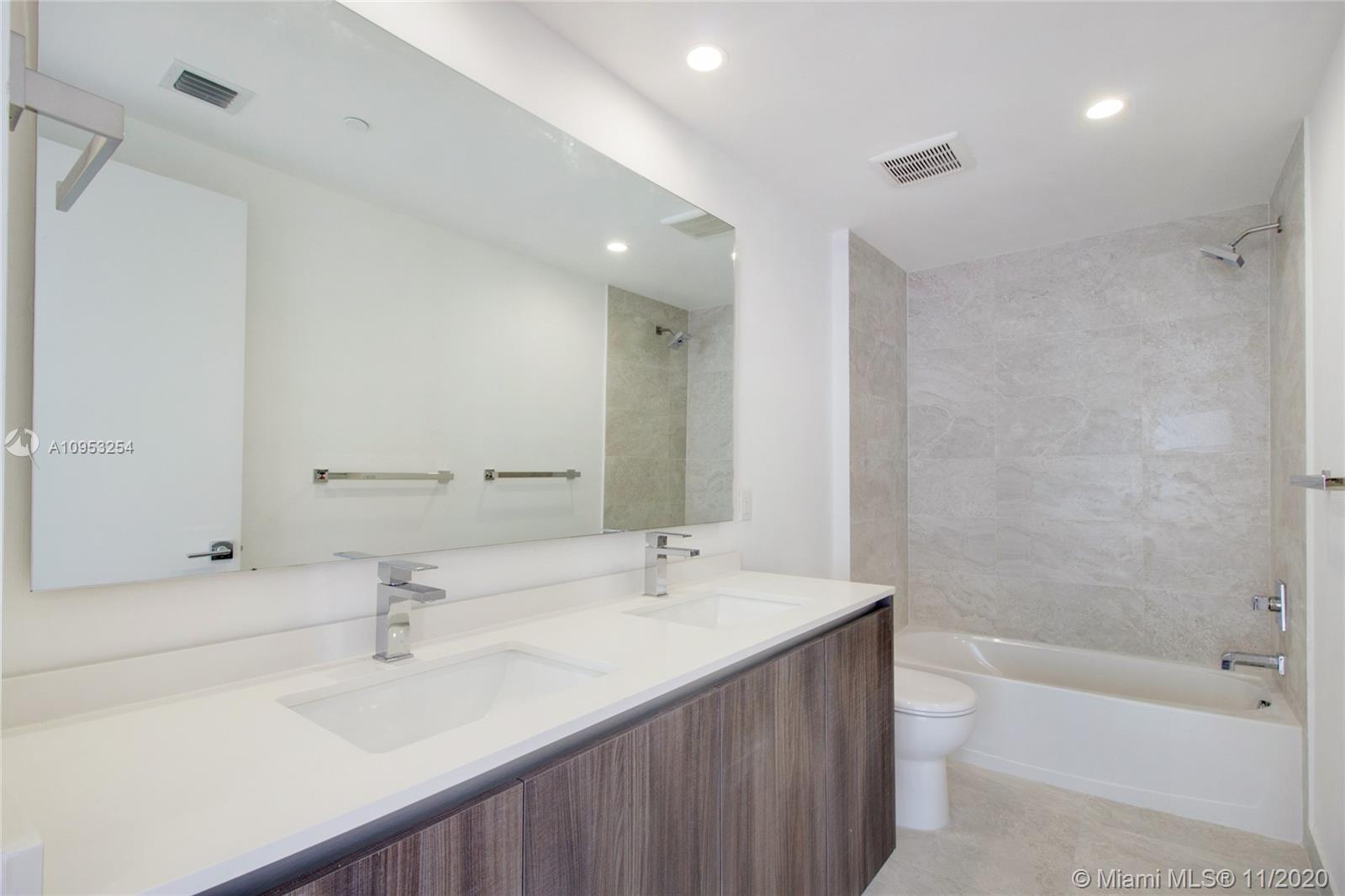 Spacious and functional split floor plan, 2 bedroom plus Den (convertible) with 3 full baths featuring porcelain flooring, oversized walk-in closets, Quartz counters and stainless steel appliances in kitchens. Come live the lifestyle at the Miami's most desirable neighborhood-Edgewater, in the city's latest and most desirable luxury waterfront building in front of the Margaret Pace Park. Five-star resort style amenities include sunrise and sunset heated pools, hot tub overlooking Biscayne Bay, BBQ, spa, sauna, steam room, resident's lounge with a private party room, business center, fitness center, yoga and pilates studio, movie theater, kids playroom and more.