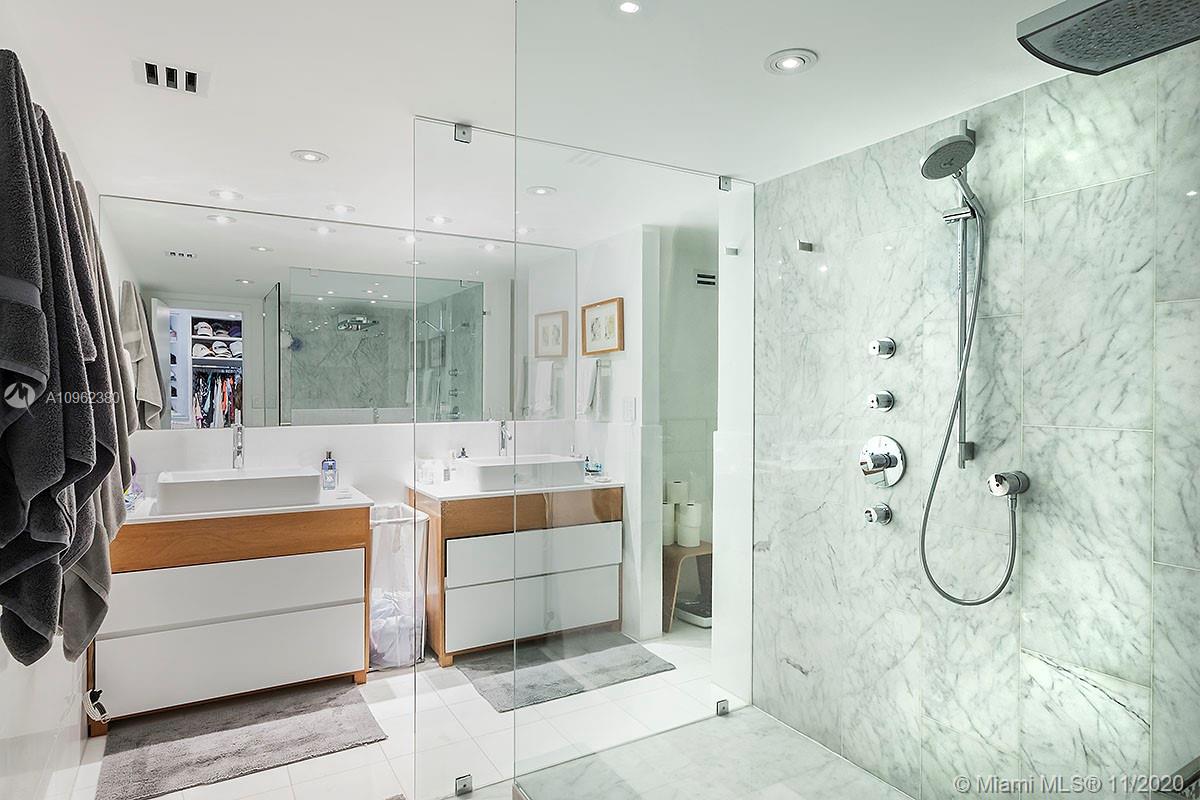 Modern boutique building in Centre of Key Biscayne. Private, direct elevator access to this gorgeous, functional Apt. Extensive upgrades , premium appliances, marble floors, upgraded doors, summer kitchen on terrace, built-in white TV library in living room. South view over green foliage from terrace and living room and master bedroom. Automatic blinds on terrace. 2 parking space + Golf cart parking available. This listing is also for rent see MLS A10962385