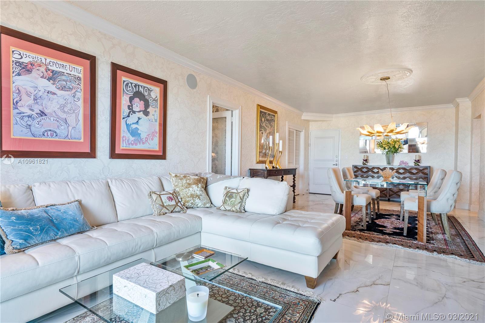 Located on the Intracoastal Waterway directly across the street from the Ocean w/ private beach access. Fabulous waterviews from this highly upgraded Residences of Hollywood Beach condo. This corner unit is masterfully upgraded with 36x 36 Brazilian Porcelain floors, Roberto Cavalli Wallpaper throughout, renovated baths and kitchen with new stainless steel appliances. Sophisticated Elegance best describes this beach condo. Hurricane resistant sliding glass doors, new thermostats, designer moldings & baseboards, custom closets, & custom window treatments. Walk to the beach for a relaxing afternoon or relax on your balcony while enjoying the intracoastal and city view. Building has 2 pools (one on the intracoastal and the other oceanside) gym. Price is Firm. Assessment paid by buyer