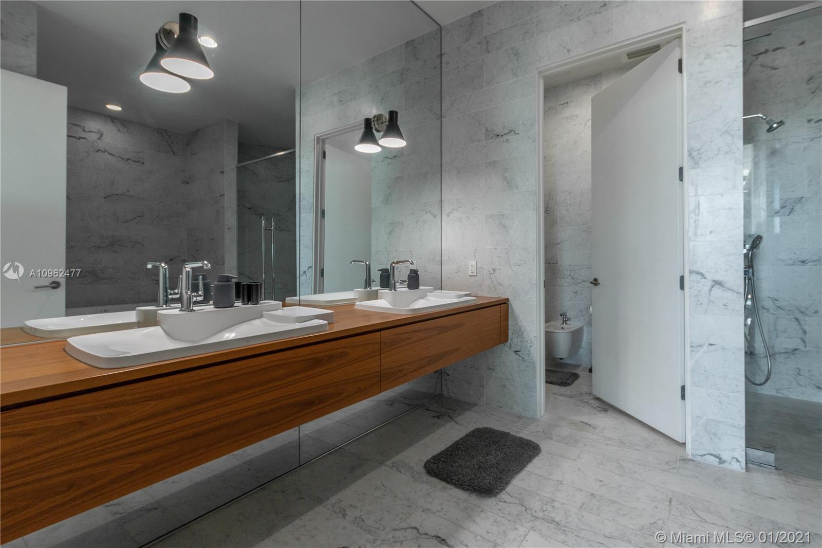 402S is a 5 BD 5.5 BA unit at Grove Grand Bay; an architectural masterpiece done by Bjarke Ingels and landscaping by Raymond Jungles. The South Tower has a mere 37 residences and closet to the water. 402S is located in the most desirable line for the South Tower(The 01 line views will be soon obstructed by the Mr. C’s building set for completion next year.). 402S is FULLY TURNKEY unit with over 500k in upgrades incl. 48x48 Italian Marble tile and is fully furnished by an interior designer. Priced to sell at 3.5M ($866PSF) it is the best deal in the building. Get lost in your tropical oasis with direct water views from your wrap around balcony. Amenities incl 2 pools incl a rooftop pool, private elevator for each residence and much more. Walking distance to restaurants and the new CocoWalk.