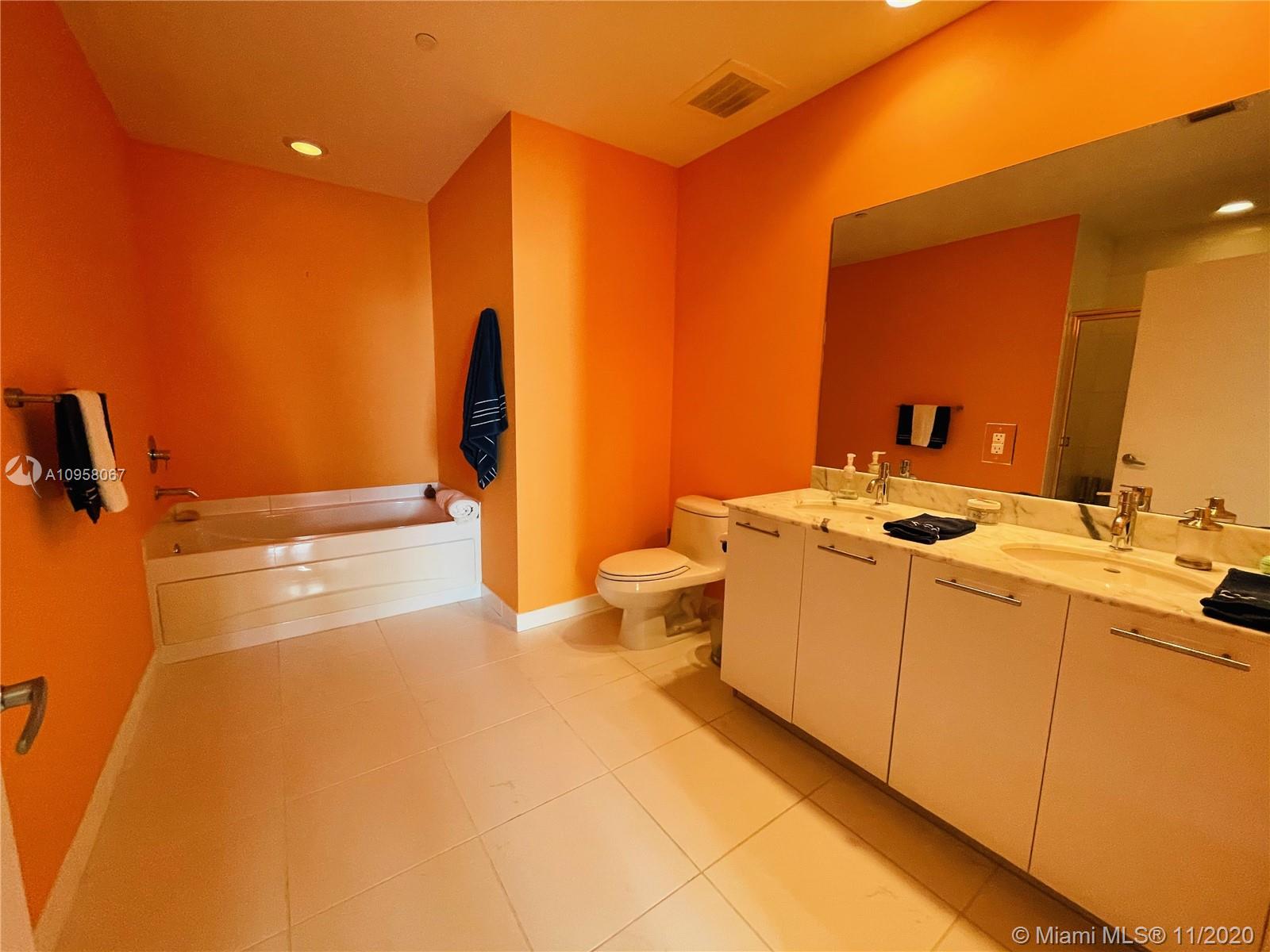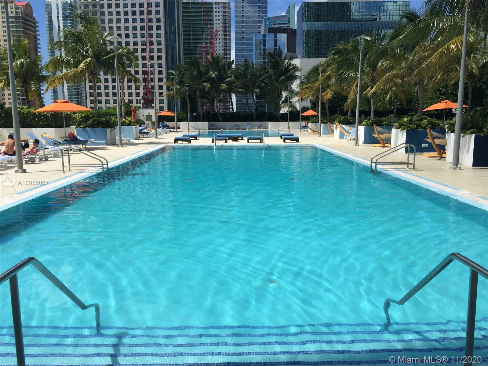Spectacular 2 bed / 2 bath unit with amazing Biscayne Bay views and porcelain floors throughout . Residence features modern high ceilings, stainless steel appliances, imported Italian cabinetry Amenities: 24 hr security and concierge, 24-hour valet parking, State of the art Fitness Center in each tower, 2 Infinity-edge heated pools, Steam room, Theater room, Business center, party room, pool table & lounge. Walk to Mary Brickell Village and Brickell City Center mall. Minutes away from American Airlines Arena & Performing Arts. HOA includes Water, basic cable & internet.
