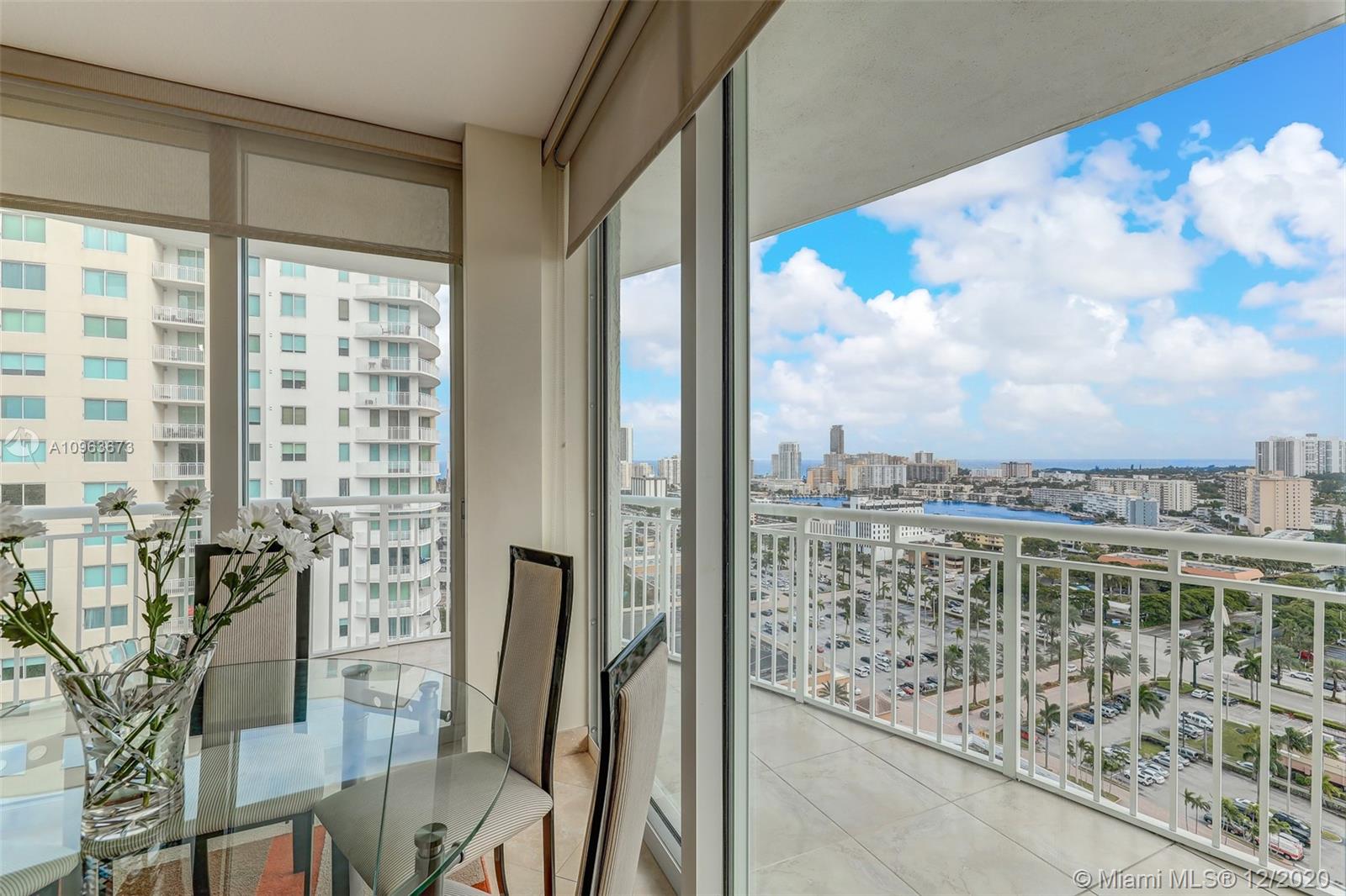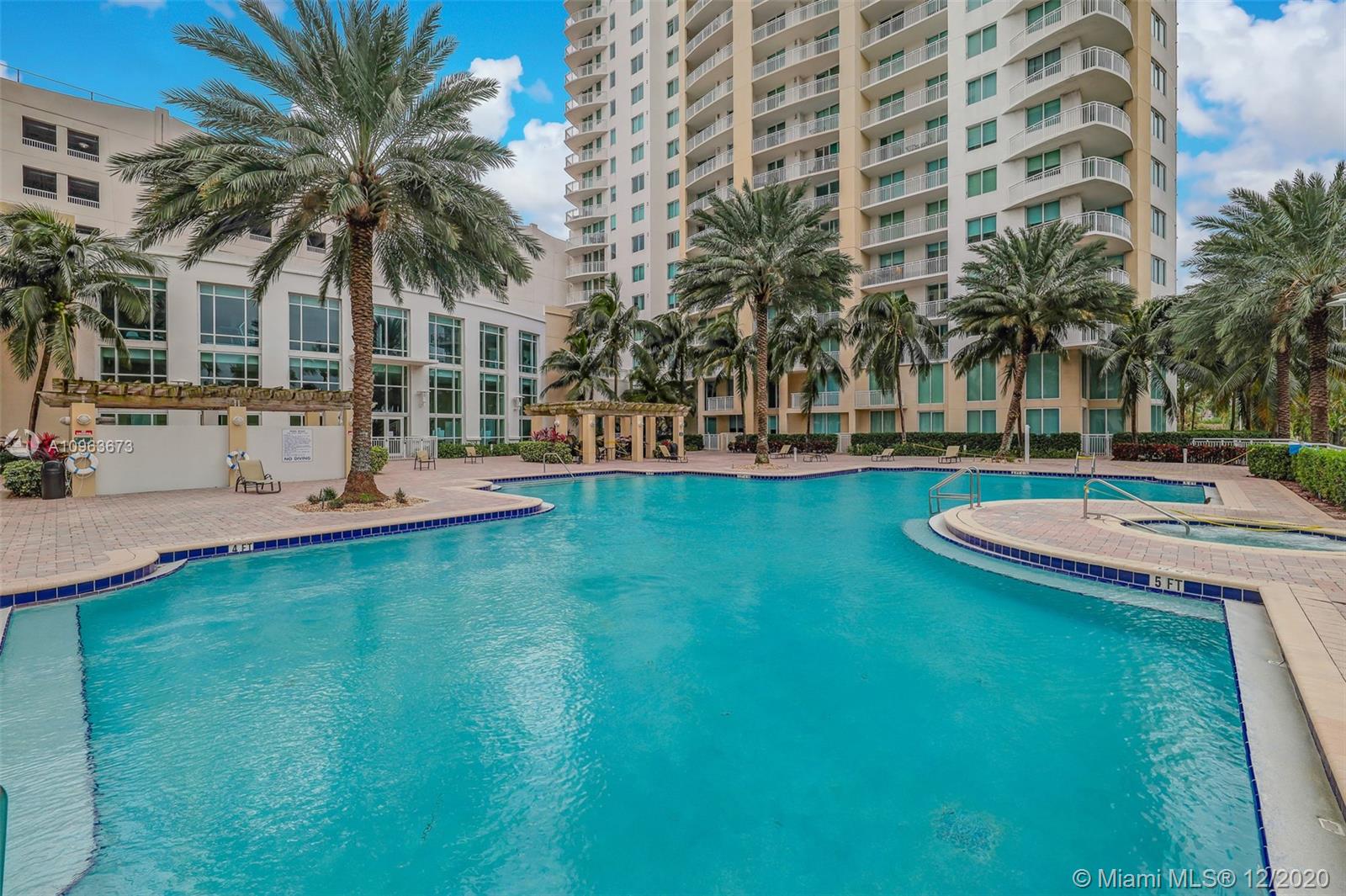 Gorgeous corner unit with wraparound balcony. Experience colorful sunrises and dramatic sunsets hitting the city skyline and the Ocean from your private terrace. Largest 2BR/2BA in the building! Marble floors in the kitchen and bathrooms and luxurious laminate wood floors in bedrooms. His and hers designer closets. Sunken tub and huge shower in master bath. Mint condition! 2 covered parking spaces and state of the art amenities for all lifestyles. Walk to shops, restaurants and the beach! Pet friendly building. Can be rented 2/year!