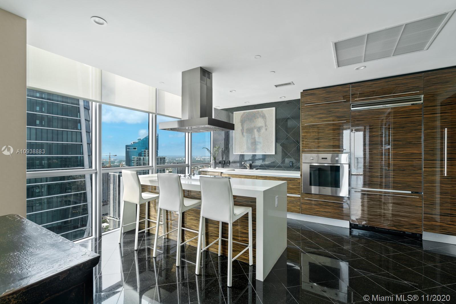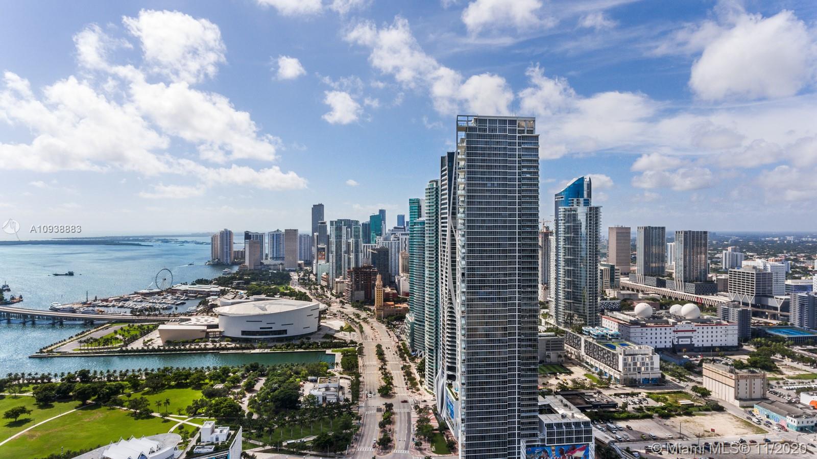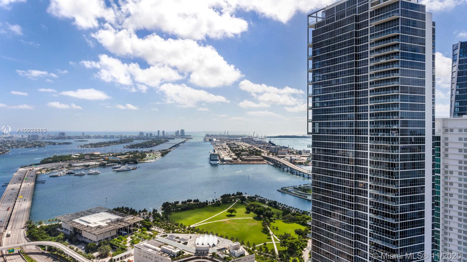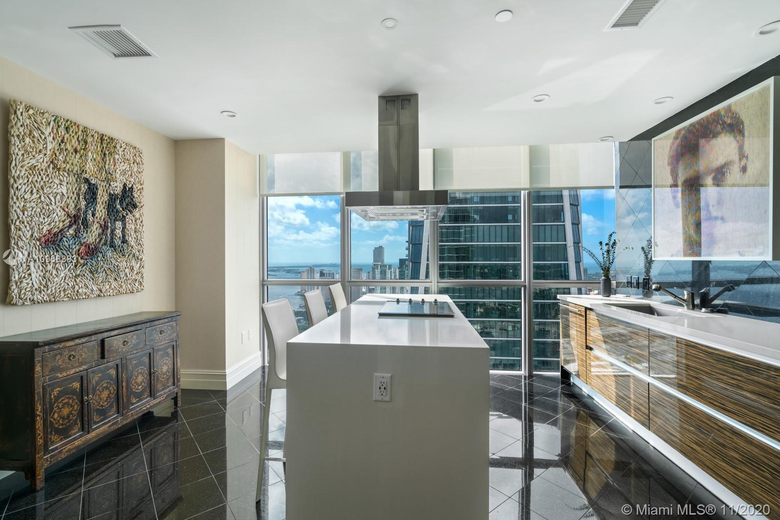Views, Views and Views from this unique south corner residence at Marquis. Enter the foyer through a private elevator and enjoy expansive views of Biscayne Bay, Miami Beach and the Miami Skyline from its bright and open double wide living room with floor to ceiling glass windows. Professionally remodeled, this residence has been converted into a 1-bedroom master suite that connects to a second room perfect for a home office, gym or lounge. Custom kitchen has Viking appliances, cream leather wallpapers, black marble floors and backsplash, with walk-in pantry. Marquis offers the ultimate lifestyle with unparalleled access to the Design District, the Adrienne Arsht Center, Museum Park, the American Airlines Arena, Joe’s Stone Crab, Miami Airline Terminals, and Metro Mover station.