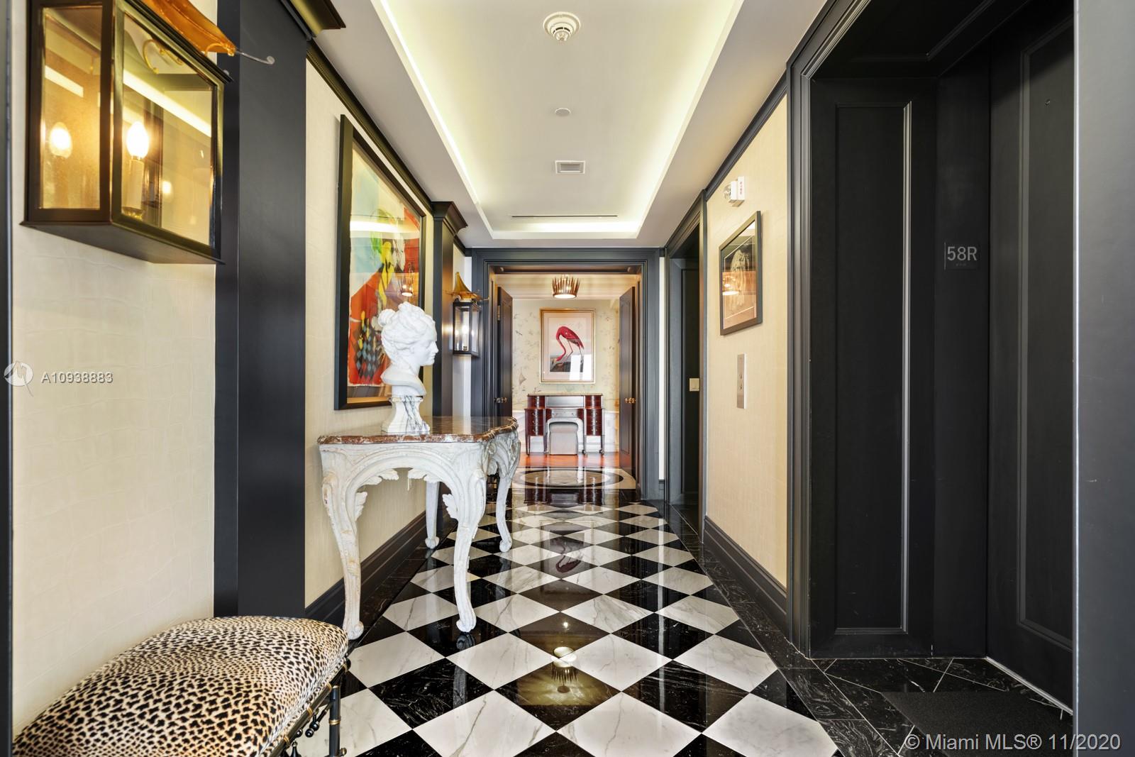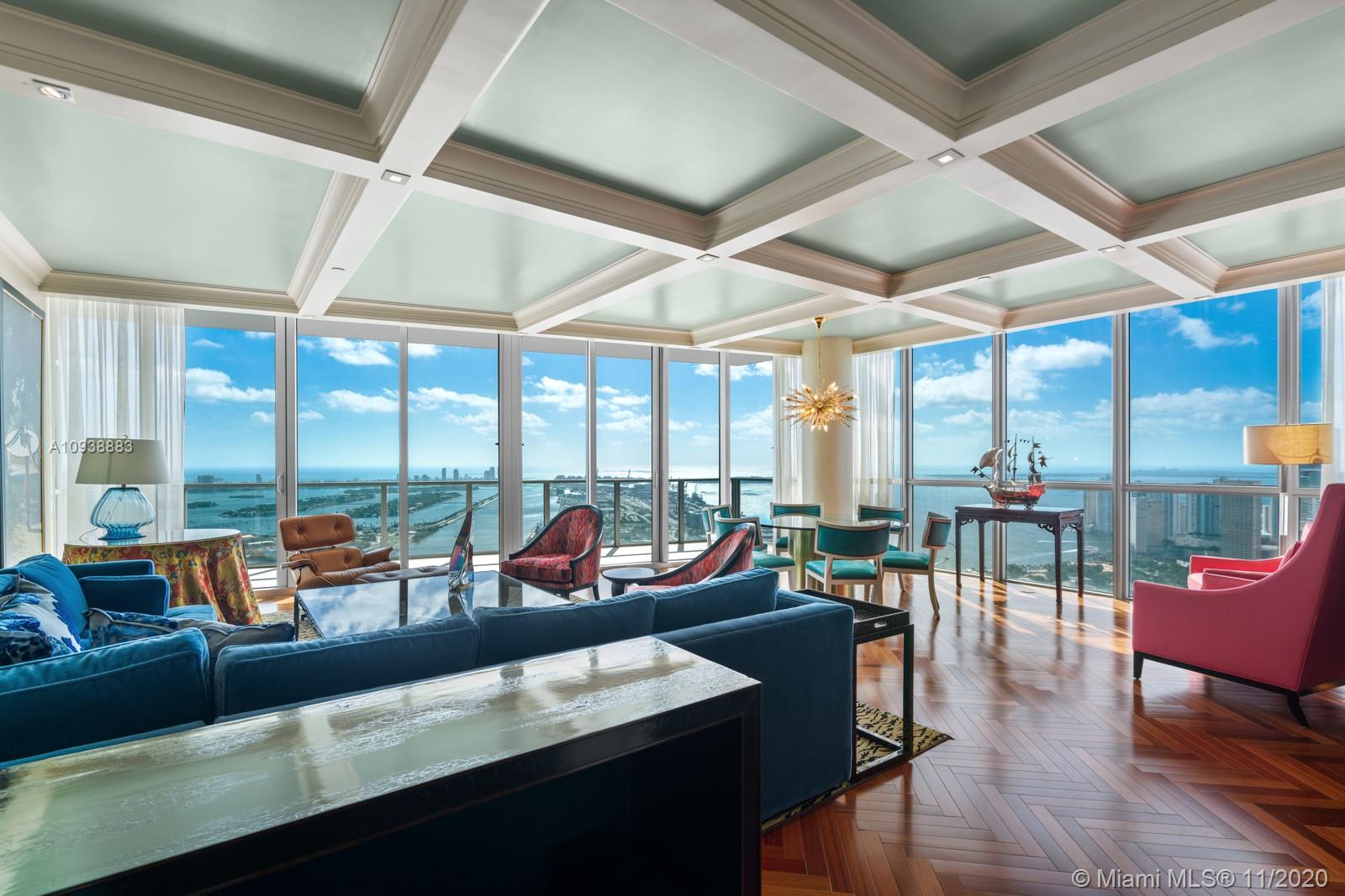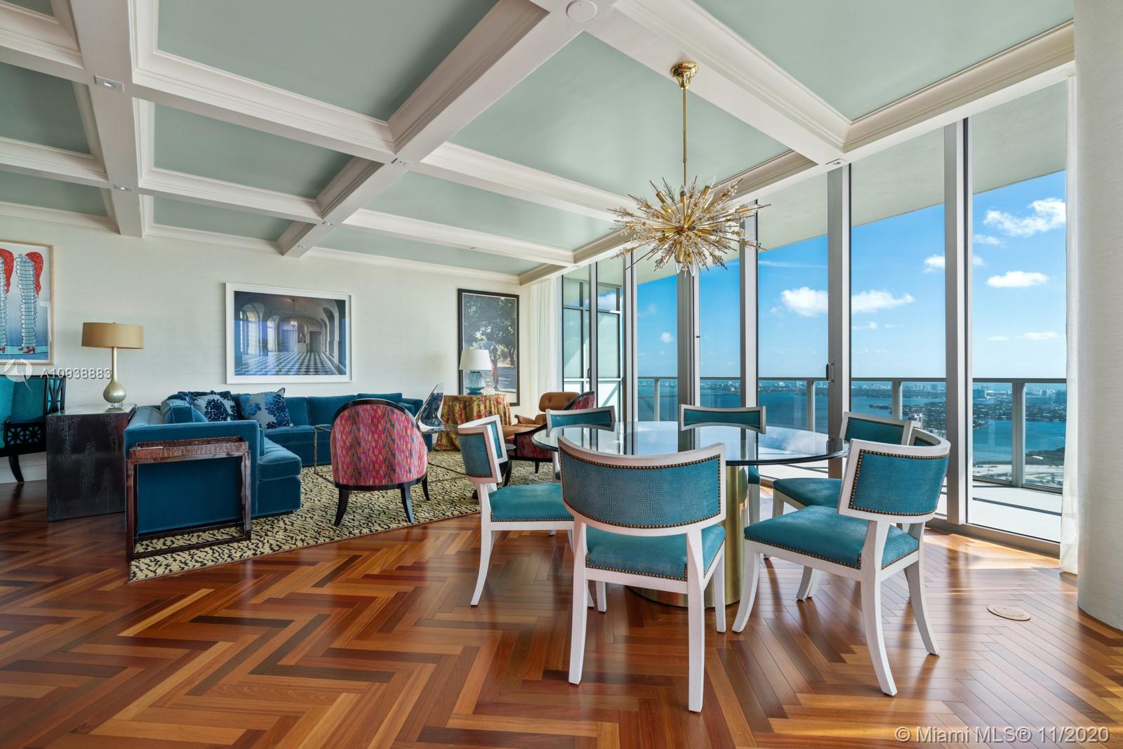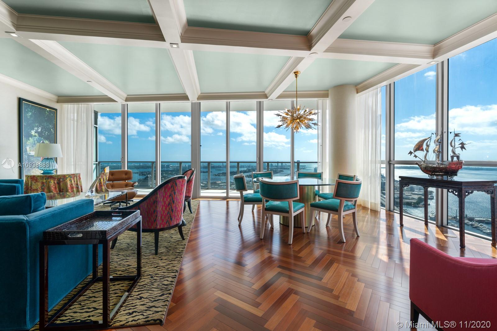 Views, Views and Views from this unique south corner residence at Marquis. Enter the foyer through a private elevator and enjoy expansive views of Biscayne Bay, Miami Beach and the Miami Skyline from its bright and open double wide living room with floor to ceiling glass windows. Professionally remodeled, this residence has been converted into a 1-bedroom master suite that connects to a second room perfect for a home office, gym or lounge. Custom kitchen has Viking appliances, cream leather wallpapers, black marble floors and backsplash, with walk-in pantry. Marquis offers the ultimate lifestyle with unparalleled access to the Design District, the Adrienne Arsht Center, Museum Park, the American Airlines Arena, Joe’s Stone Crab, Miami Airline Terminals, and Metro Mover station.