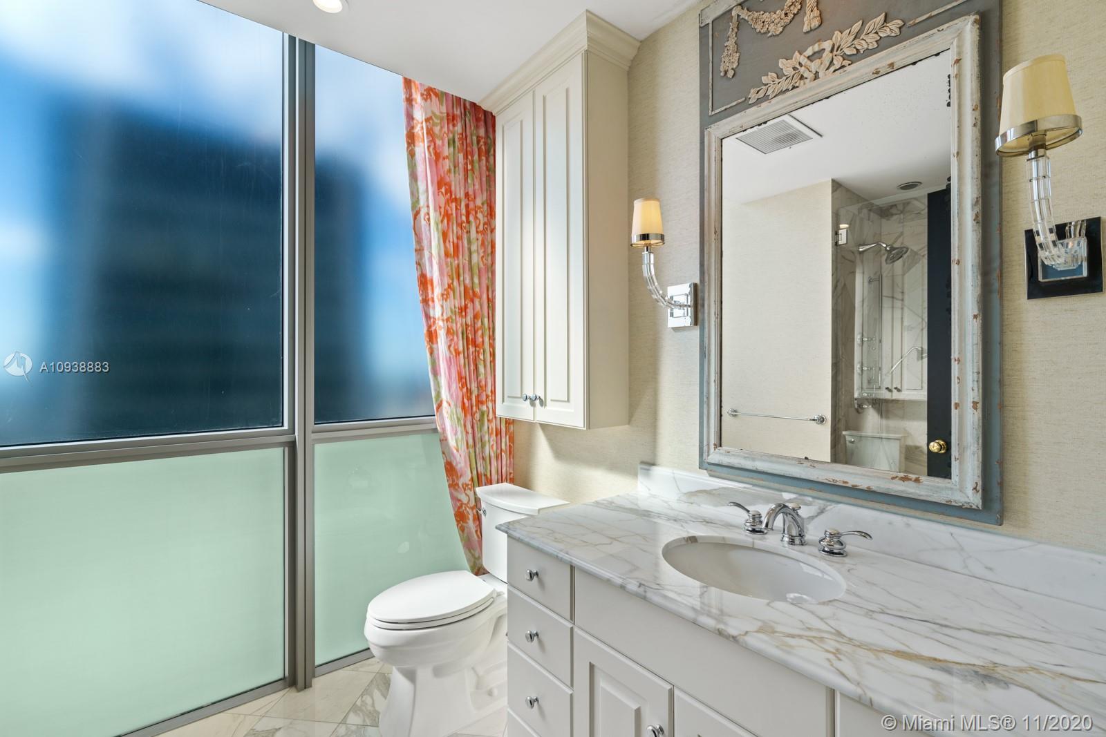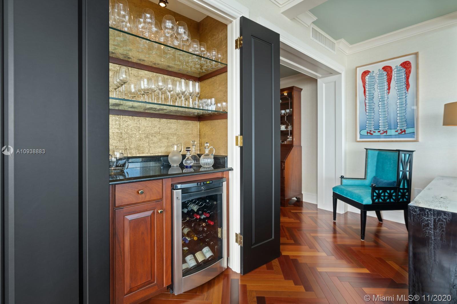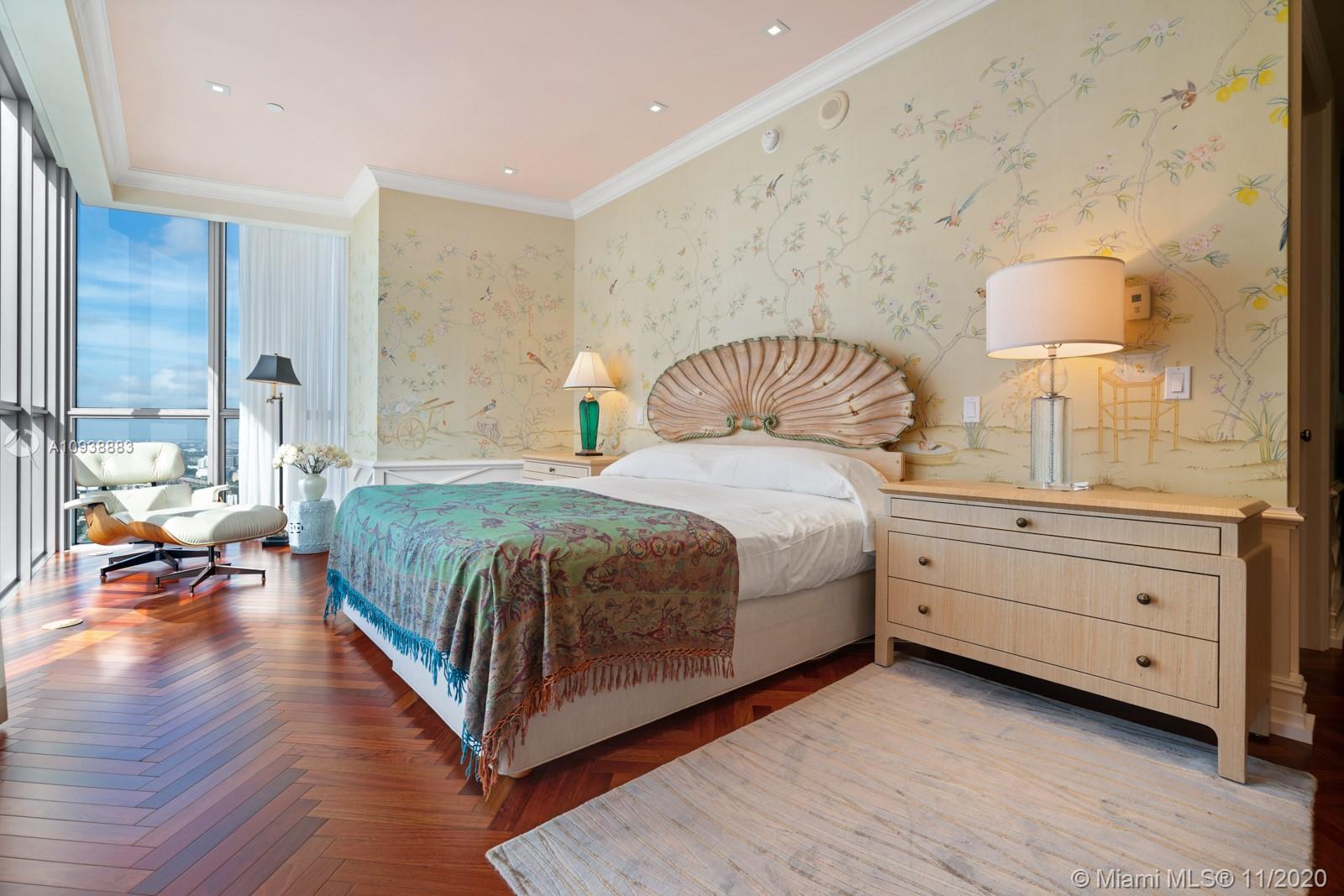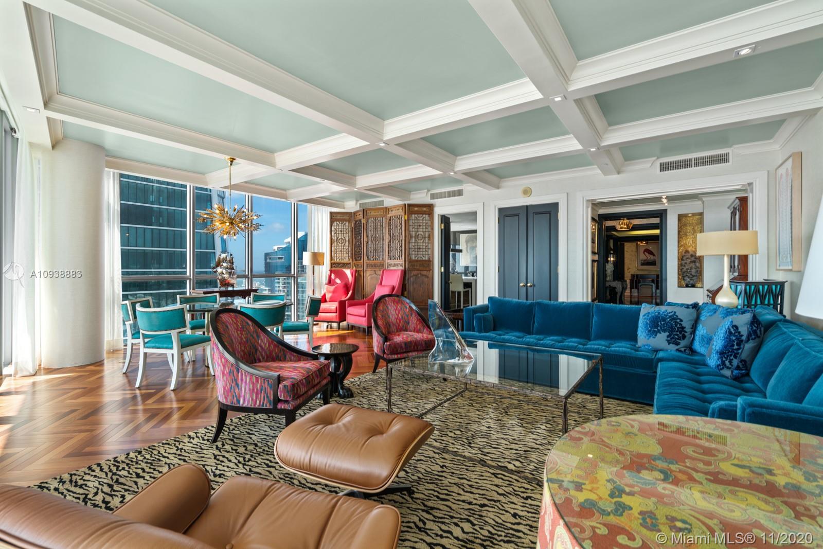 Views, Views and Views from this unique south corner residence at Marquis. Enter the foyer through a private elevator and enjoy expansive views of Biscayne Bay, Miami Beach and the Miami Skyline from its bright and open double wide living room with floor to ceiling glass windows. Professionally remodeled, this residence has been converted into a 1-bedroom master suite that connects to a second room perfect for a home office, gym or lounge. Custom kitchen has Viking appliances, cream leather wallpapers, black marble floors and backsplash, with walk-in pantry. Marquis offers the ultimate lifestyle with unparalleled access to the Design District, the Adrienne Arsht Center, Museum Park, the American Airlines Arena, Joe’s Stone Crab, Miami Airline Terminals, and Metro Mover station.