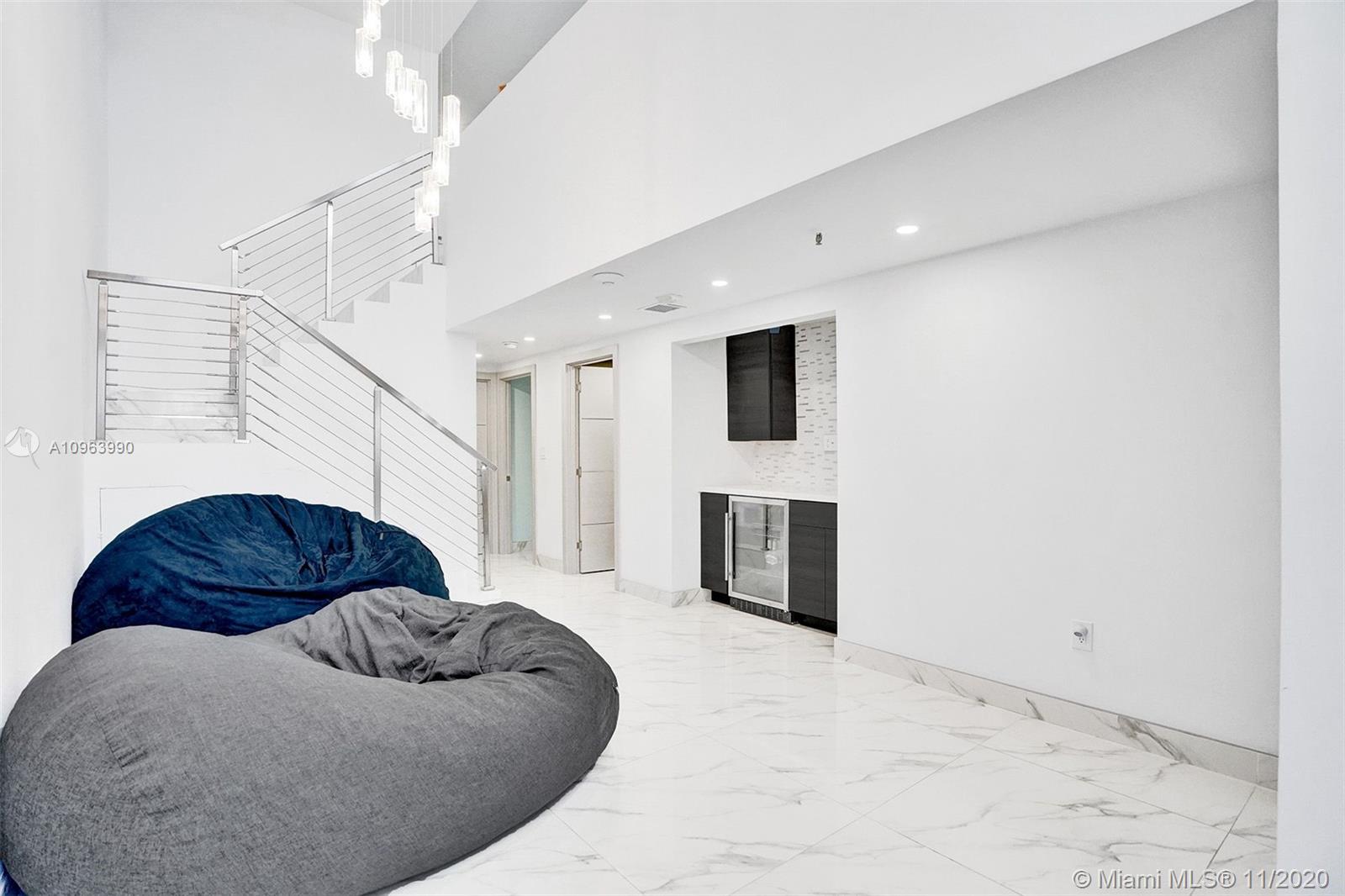 Stunning waterfront 2-story townhouse, completely & tastefully renovated, private secured elevator entrance. Spacious open floor plan boasts vaulted ceilings and a loft entertainment area in addition to the main living room, both with serene intracoastal views. Remodeled kitchen and bathrooms with high-end appliances Viking and Miele, European cabinetry, porcelain 32x32 tile throughout, build-in custom closets, European doors, fully wired for smart-home installation, tankless electric water heater & full-filtration system. Poinciana Island Yacht Club is a hidden gem 24/7 secured gated waterfront community in the best A-rated school district in prestigious Sunny Isles, offering 2 pools, gym, tennis & basketball courts, clubhouse, located across the street from the Beach. NO BOAT DOCK.