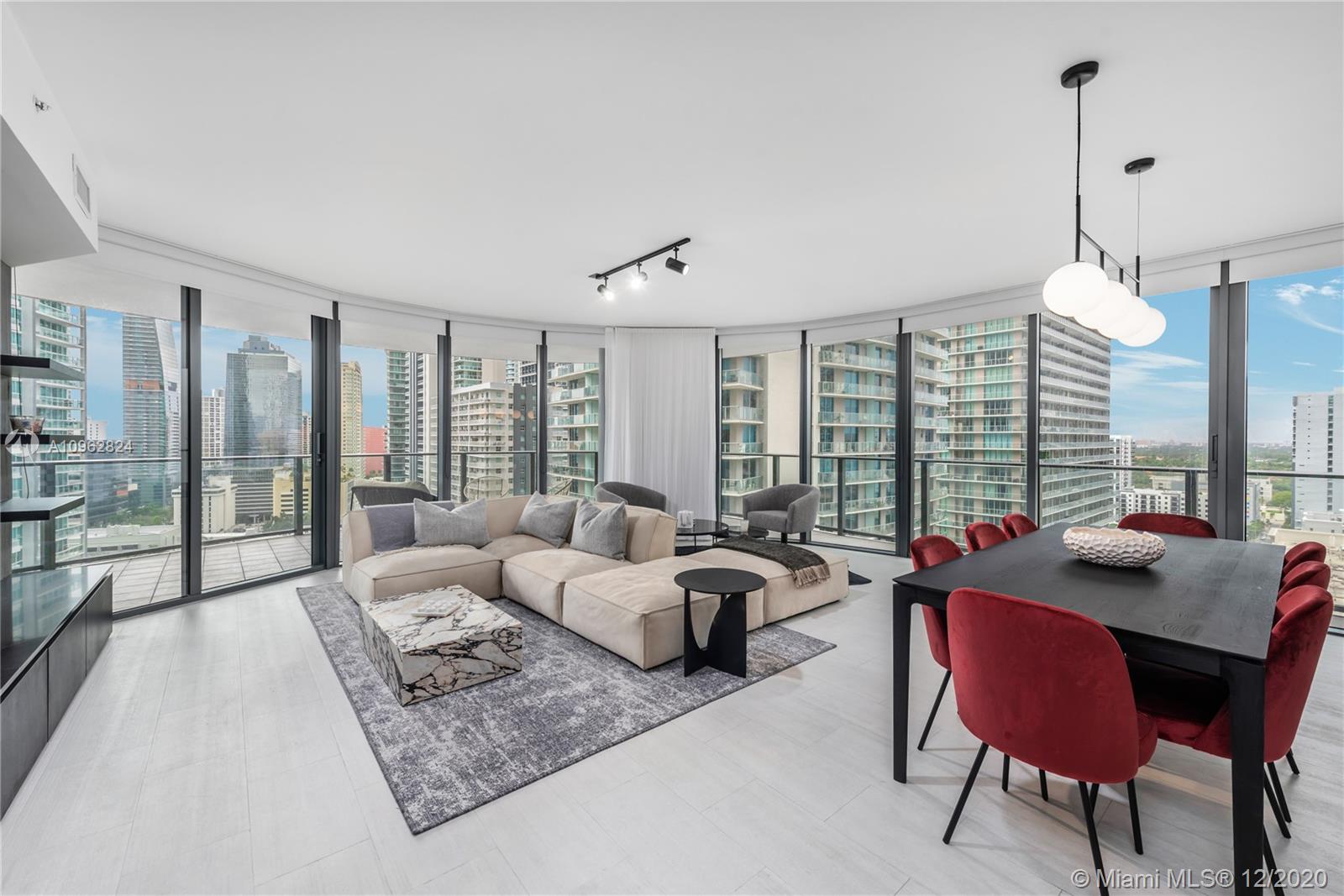 Presenting the opportunity to live at Miami's newest architectural icon: Brickell Flatiron Tower Residence#2102. Largest layout available for tower residences, this unit is complete w 3BD/3.5BA, floor to ceiling windows & deep elliptical glass balconies that offer panoramic views from every room. Custom Snaidero kitchen, professional Miele appliances & imported Italian finishes showcase the level of quality of this renowned concierge building. Take living to new heights on the 64th Floor Rooftop Deck boasting city & water views, state of the art spa + fitness center & an unforgettable resort style pool. Located in the heart of Brickell & steps from Mary Brickell Village & Brickell City Centre, residents enjoy walkable access to countless choices of sidewalk cafés, fine dining & shopping
