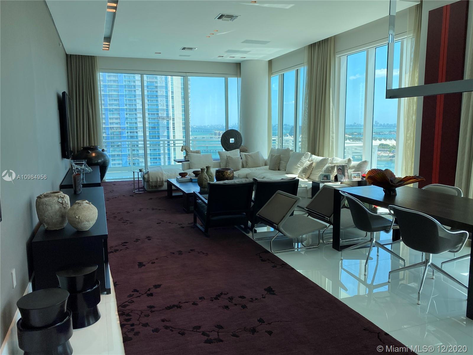 The #1 Most Exclusive & Luxurious Residence For Sale - A true 'MANSION IN THE SKY' in the heart of Brickell, yet on the exclusive Island of Brickell Key-"An Island within The City". This gorgeous residence features 4-bedrooms, 5-full & 1-half baths plus an office. Soaring 12ft ceilings, private elevator, stunning water & city views. Live the "Island Life" & walk to the hustle & bustle of Brickell: Shopping, Entertainment, Restaurants & The Brickell City Centre! 2 Premium Parking spaces + Valet & storage unit. Asia is Brickell Key's premier luxury building w/ all of the 5-star amenities. Unit was professionally done and decorated with over 1.5 million in improvements. unit rented until September 14, 2022