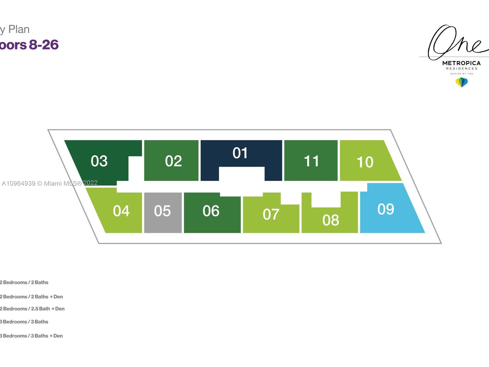 Condo 1BR 1bath 1half bath, facing South, at Metropica. Located in Sunrise adjacent to Sawgrass Mills Mall. Kitchen w/stainless steel appliances, this luxurious residence offers a living space with open kitchen, with Italian Cabinets, white quartz counter-top, panoramic floor to ceiling impact windows, tile floors throughout. Resort amenities include gym by Technogym, spa, sauna & steam room, biz center, kids’ playroom, theatre room, party room, club room w/bar, lounge, kitchen, event/party space. Guest suite, infinity-edge pool, jacuzzi, BBQ, pet spa, 24 security & concierge & valet. One parking space assigned to unit. +Extra parking space and storage room available for rent. Offered at lowest price in the building. Tenants occupied, leased $2,400 until Jun 12, 2023