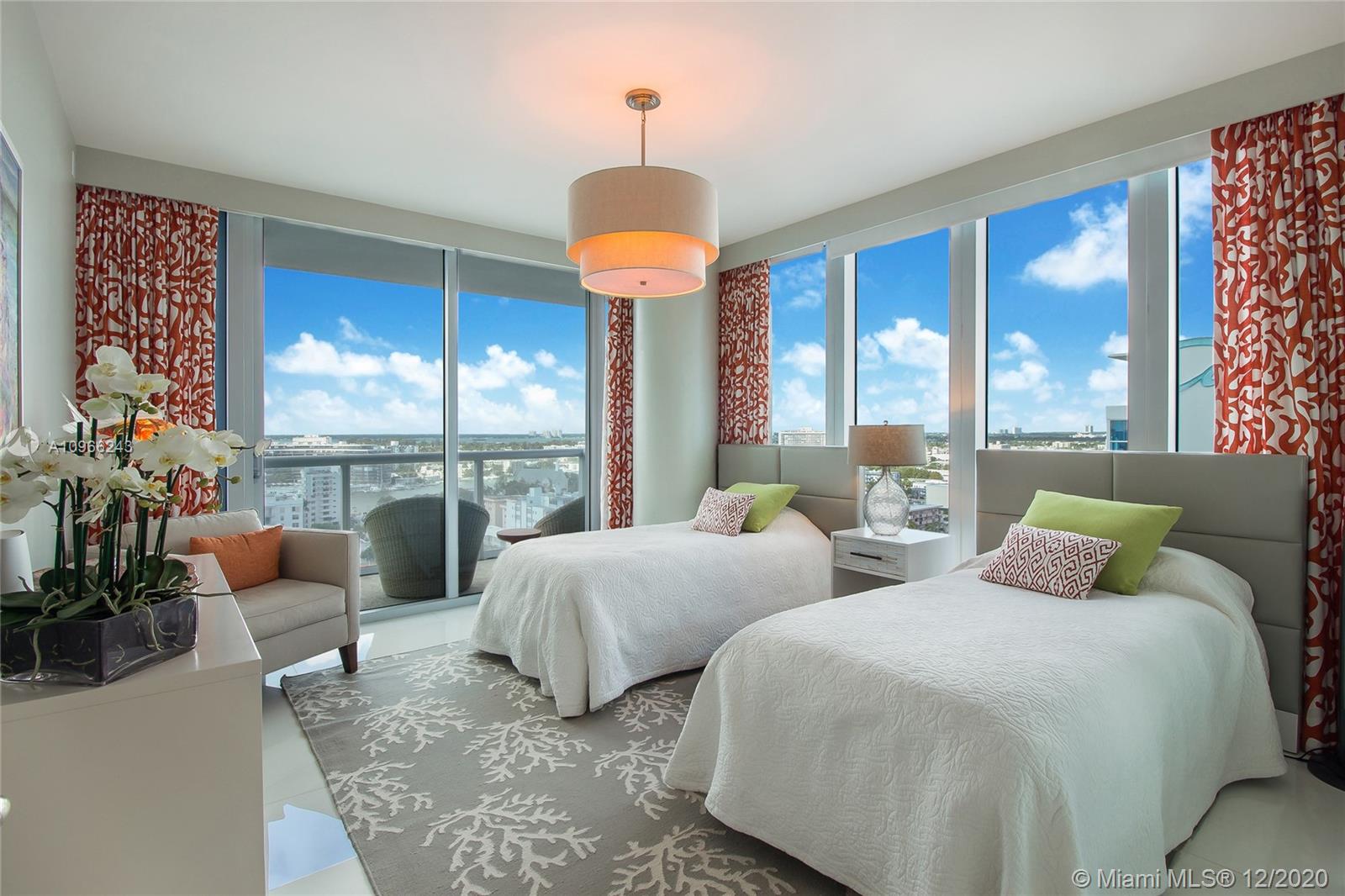 Highly desired stunning corner flow through unit at Carillon Miami Wellness Resort, a premier oceanfront luxury property. Spacious floor plan with privacy between master and second bedroom. Two balconies-one spans master bed & living room with ocean view+one with city, sunset & bay views. And, also view of Palm Court facing north. May be combined with 1 bedroom Unit 1501 for larger unit or companion unit. Indoor connector to 70,000 sqft hotel fitness/spa center. Classes offered 7 days week. On site salon; 4 pools; concierge; restaurant; Corner Store; beach service, bar, 24-hour security, valet, & full array of wellness services. Walking neighborhood with all conveniences. Especially now, you deserve a sanctuary with a lifestyle of luxury and in a community that values wellness and safety.