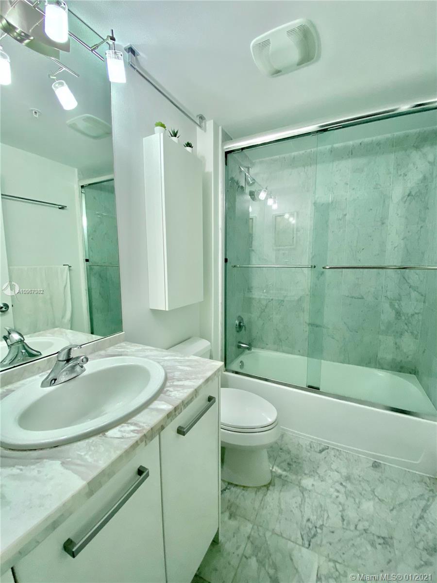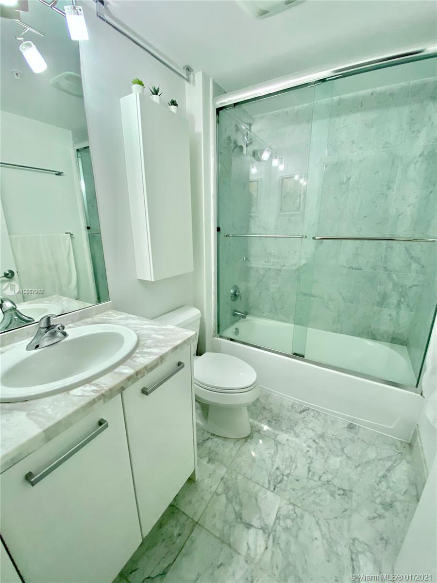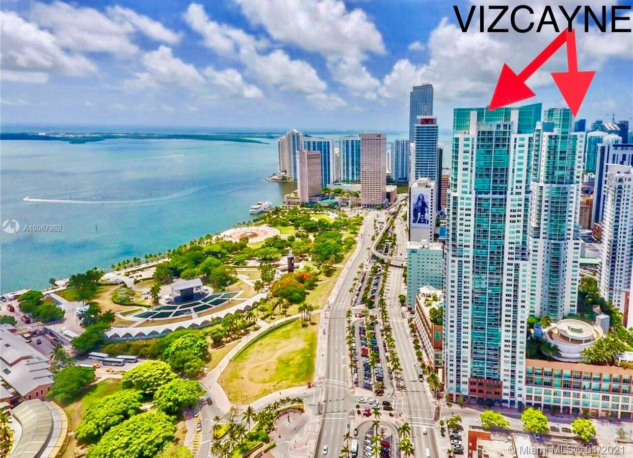Unique one of a kind spacious corner unit (1,146 SqFt) at the Luxurious twin-tower Vizcayne Condo in the heart of Downtown Miami. Completely renovated and 100% custom-built 1 BR + Converted Den/ 2 Full Baths. Oversized Master Bedroom. Den converted to a second bedroom with built-in closets & sofa converts to a queen bed. Living room has a custom marble island with a built-in TV. Kitchen has high-end Stainless Steel appliances & marble countertops. 2 Full bathrooms with marble floors, showers & glass doors. Huge custom walk-in closet. New Full-size washer & dryer. Beautiful honey-color Real Wood Floors (NOT laminated). Unit comes with 1 parking space and 1 storage unit. Condo offers 5-star resort-style amenities; 4 tropical pools, jacuzzi, spa, gym & 24 hr lobby receptionists and security.