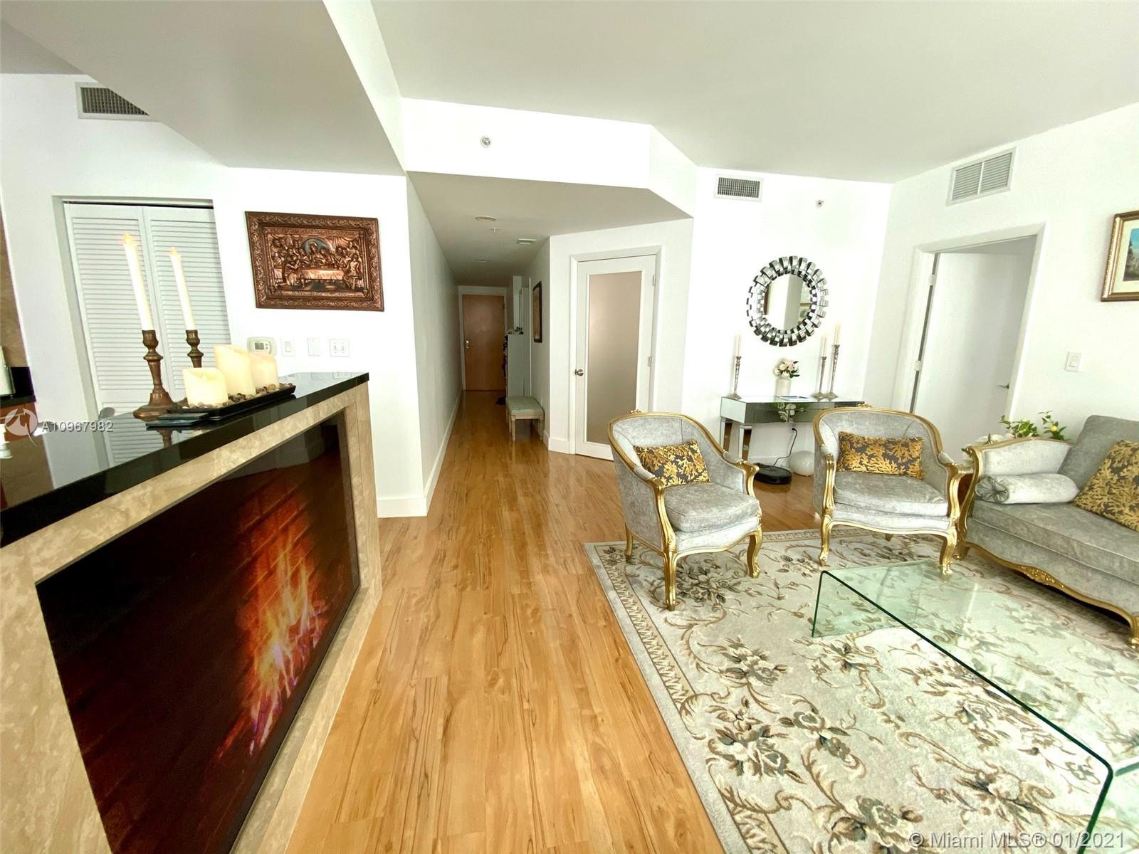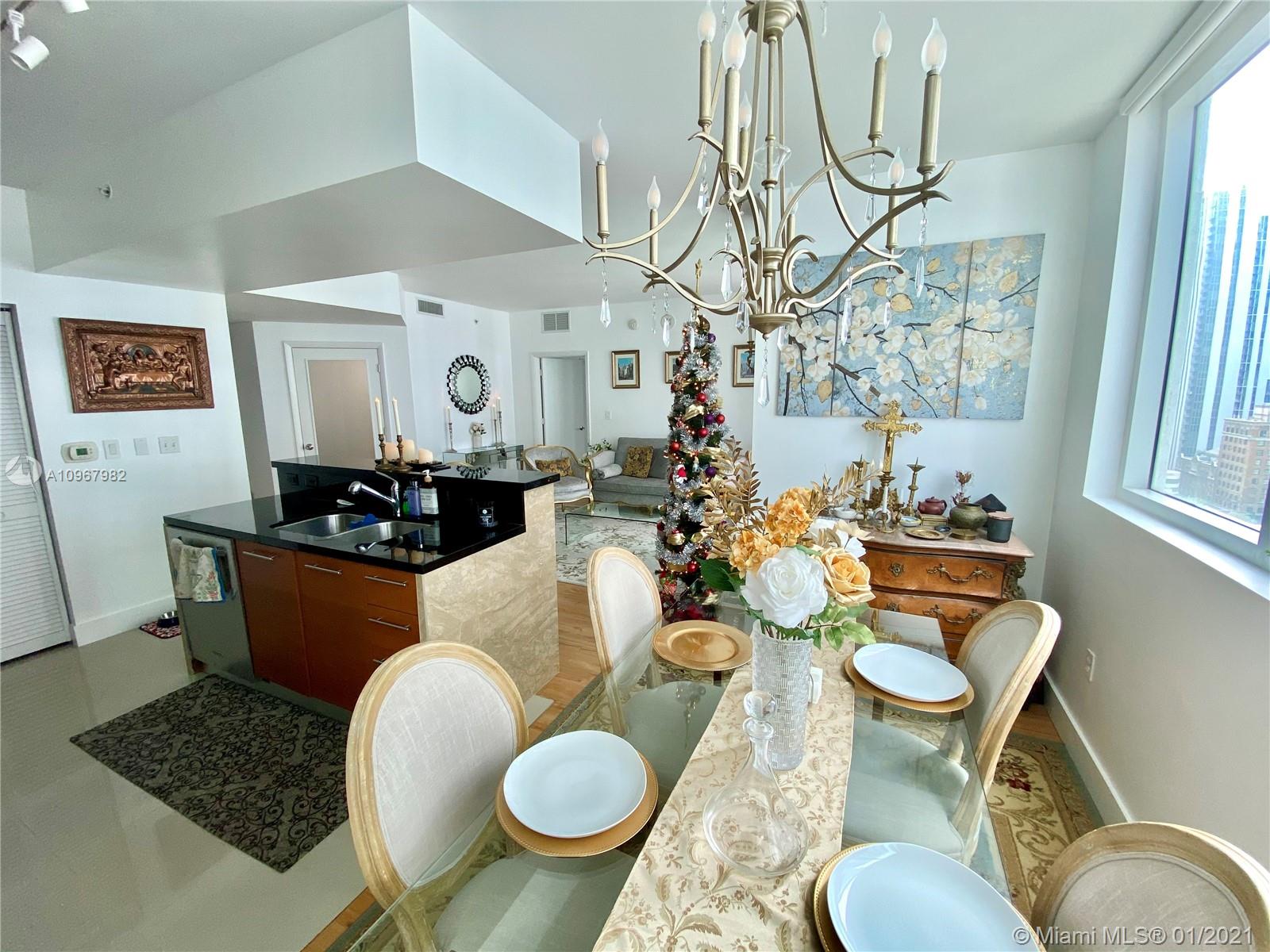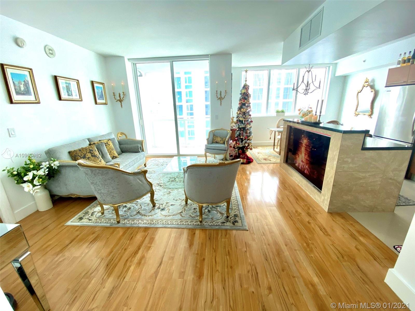 Unique one of a kind spacious corner unit (1,146 SqFt) at the Luxurious twin-tower Vizcayne Condo in the heart of Downtown Miami. Completely renovated and 100% custom-built 1 BR + Converted Den/ 2 Full Baths. Oversized Master Bedroom. Den converted to a second bedroom with built-in closets & sofa converts to a queen bed. Living room has a custom marble island with a built-in TV. Kitchen has high-end Stainless Steel appliances & marble countertops. 2 Full bathrooms with marble floors, showers & glass doors. Huge custom walk-in closet. New Full-size washer & dryer. Beautiful honey-color Real Wood Floors (NOT laminated). Unit comes with 1 parking space and 1 storage unit. Condo offers 5-star resort-style amenities; 4 tropical pools, jacuzzi, spa, gym & 24 hr lobby receptionists and security.
