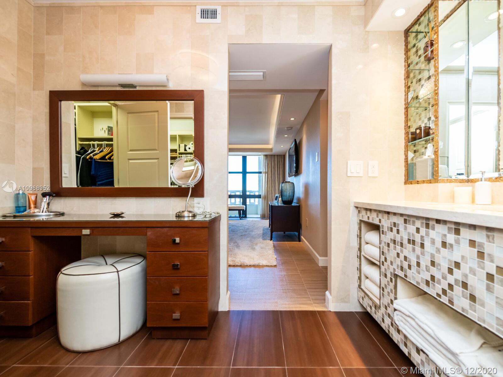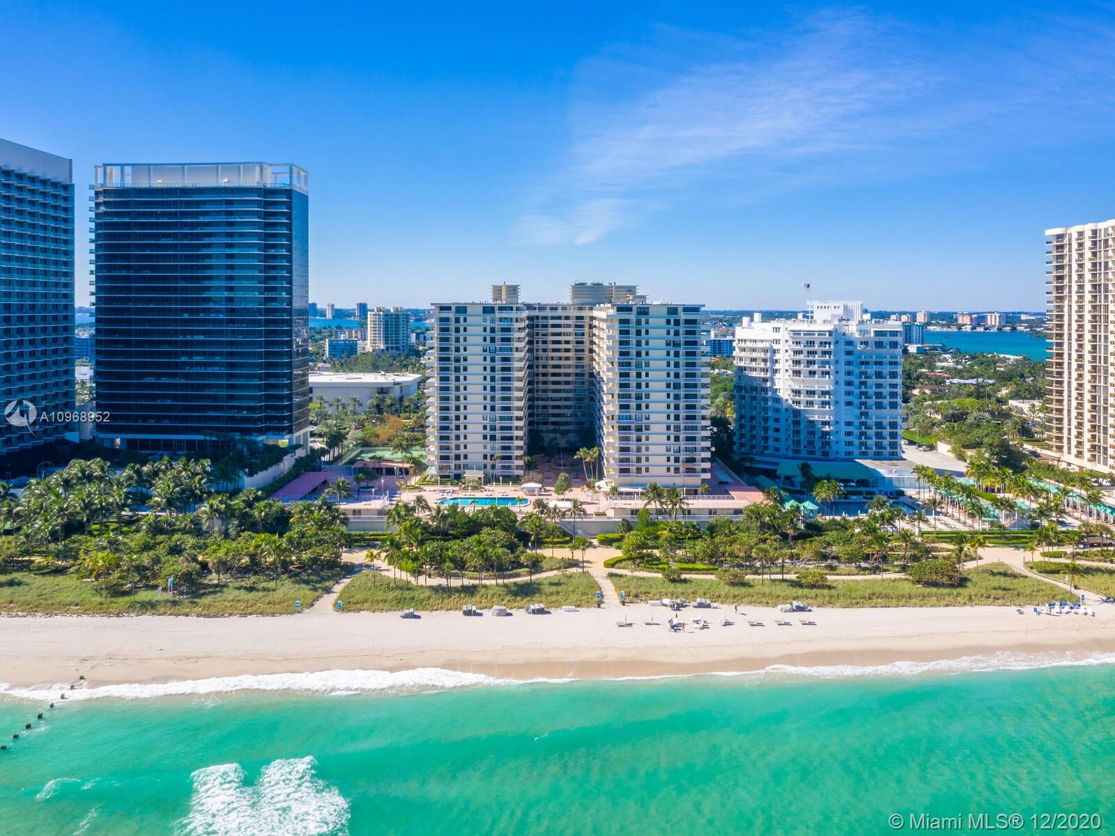 Truly "One of a Kind" apartment. "O" line on the 20th floor with unparalleled unobstructed views forever, city, bay and skyline views. The apt is done to perfection. Marble floors in main rooms, new hi impact hurricane proof windows and sliding glass doors, and Architect's designed kitchen with top of the line appliances, Sub Zero, Wolf, and cutomized counters rarely seen. Every inch of this apartment has been precisely thoughout to take advantage of the size ,location and view. Bedrooms , closets, window treatments and bathrooms can only be described as perfect. Balmoral with every option including restaurant, spa, tennis courts and across from the Bal Harbour Shops. Huge 50ft terrace!