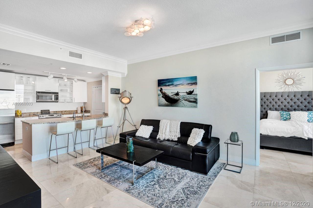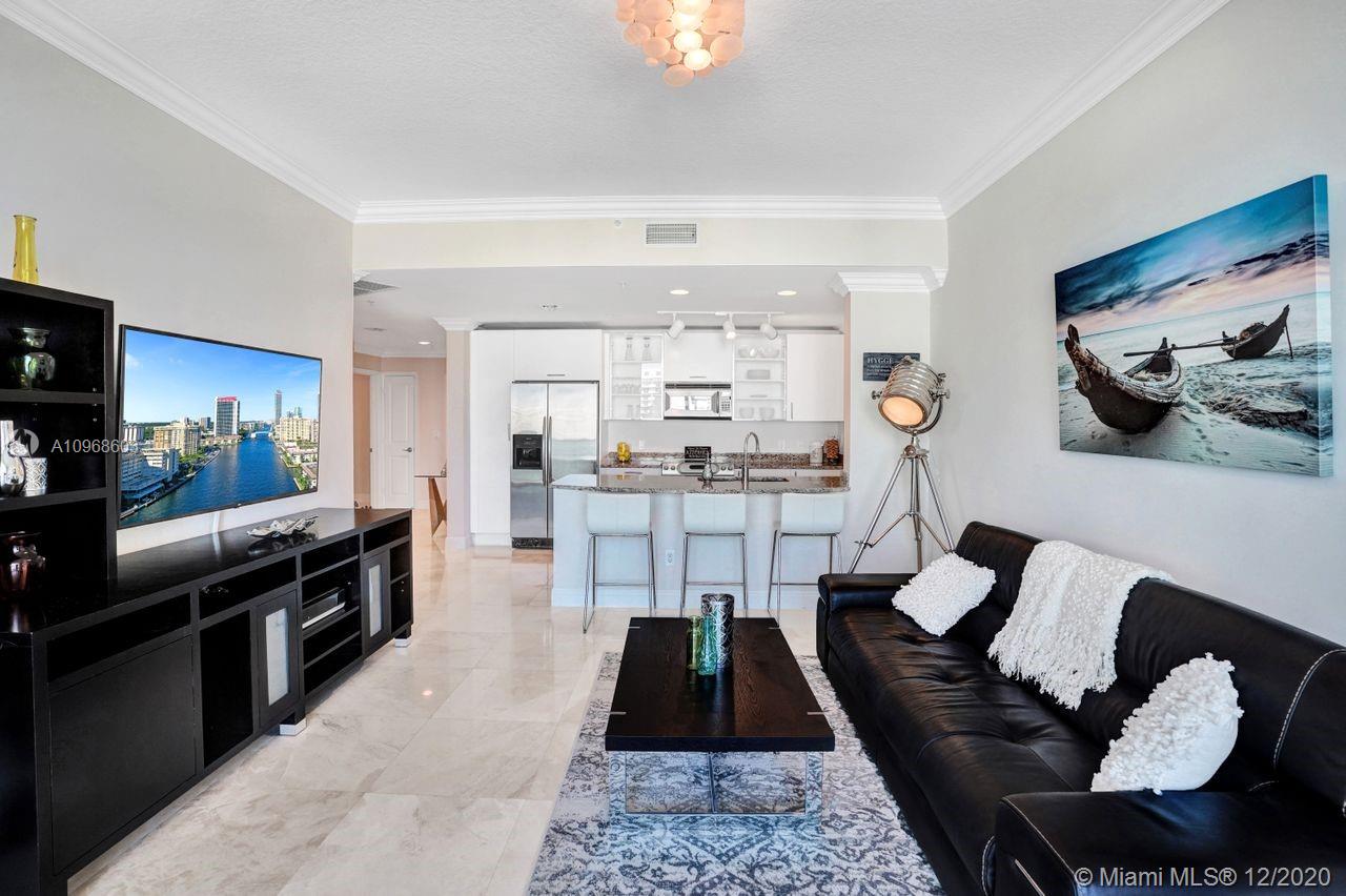 Own a FULLY FURNISHED, gorgeous piece of waterfront paradise in Hallandale Beach! 1,250SF, 2BR/2.5BA+dining & laundry room & 152SF balcony w/intracoastal, ocean & city views. Enter this serene condo & relaxation immediately sets in w/welcoming living decor & water views. Ideal for seasonal buyer, investor or homeowner. Open kitchen, newly updated w/white cabinets, granite counters, stainless appliances & counter bar seating area. Master suite w/custom walk-in closet, 2 sinks, Roman tub &, frameless shower. 2nd BR w/ensuite bath, custom closet & balcony access. 2 garage spots & storage unit. Resort-style amenities–heated pool w/36 private cabanas, whirpool, gym, lounge, biz center, billiards, valet parking, security & more. Pets <20lbs welcome. Also for rent.