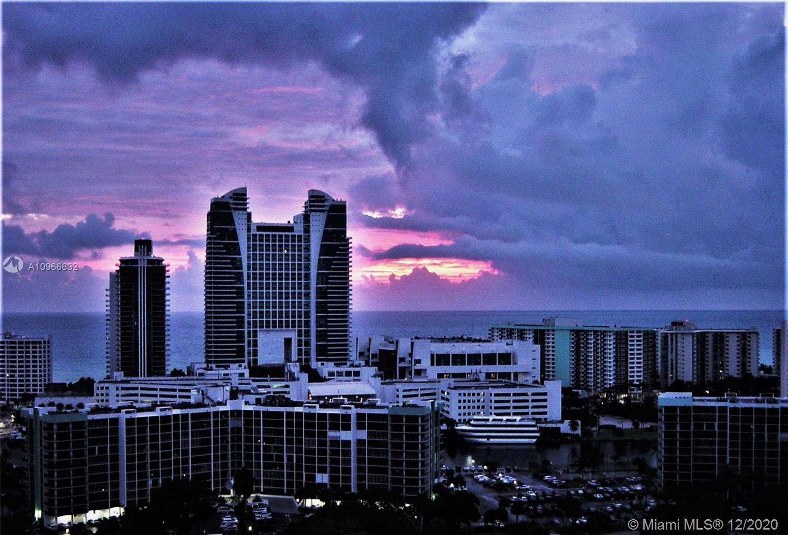 Forever sunrises over the ocean. Spectacular high floor ocean & Intracoastal views. Spacious 1/1.5 unit. Large living area, soft neutral colors, tile floors & vintage fan. Charming french doors. All newer SS appliances & newer A/C & W/H. The Olympus, securely nested in 3 islands, is surprisingly convenient to many desire locations. A stone's throw to Aventura shopping, diverse dining, Hallandale & Hollywood beaches, or Gulfstream Park. The Olympus is bristling with well-maintained amenities. Pinch yourself, if you think is a resort. Two heated pools & its very own Intracoastal marina. Tennis, state-of-art gym, sauna, billiards, or plan a BBQ. A vibrant community life, 24/7 security, underground parking, and valet... all add up to deliver the Olympus experience!