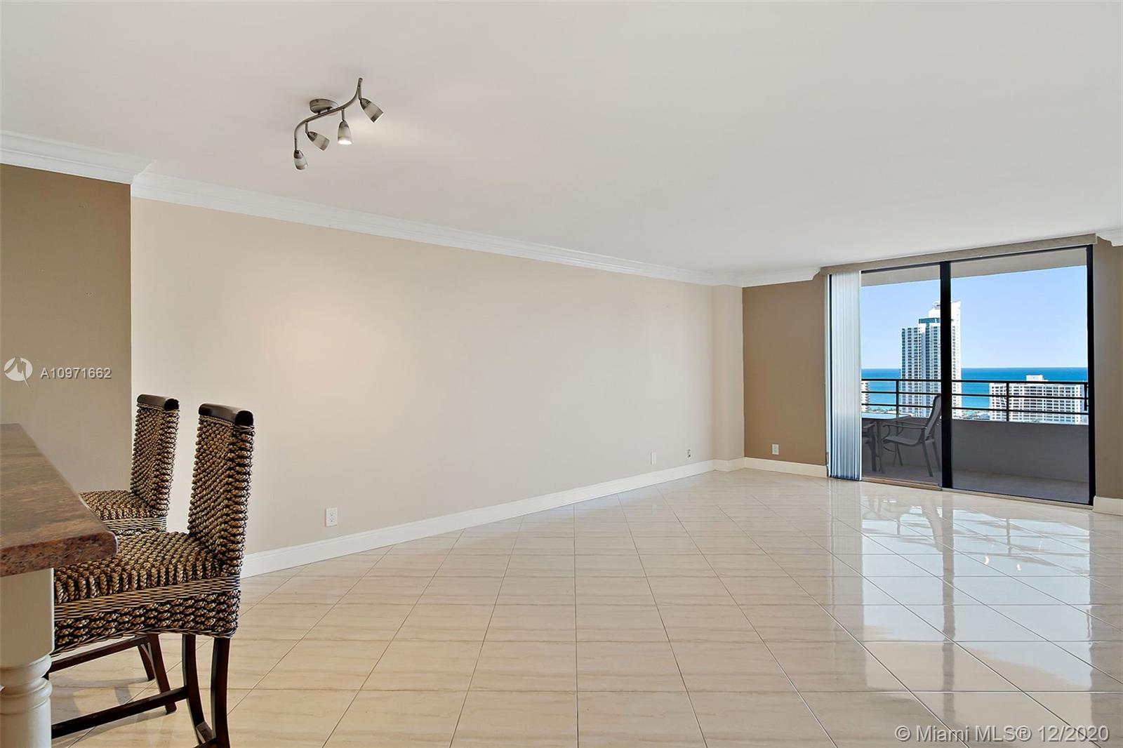 VIEWS! VIEWS! VIEWS! Nestled in the heart of Three Islands gated community, this bright and spacious gut renovated 1 Bed, 1.5 Bath condo in the sky boasts unparalleled panoramic ocean and intracoastal views.Eastern exposure allows you to enjoy your mornings overlooking breathtaking sunrises over the ocean. Granite countertops in Kitchen and Bathrooms, stainless steel appliances with solid wood cabinetry and a kitchen bar top for easy entertaining. Crown and base moldings throughout the unit with tiled floors including the balcony. Abundant storage including a Custom california walk-in closet The Olympus offers resort style amenities. Minutes to the Ocean, Shopping, Restaurants, Gulfstream Park & Casino and Aventura Mall. Storage included. Investors welcome - Rentals are ok!