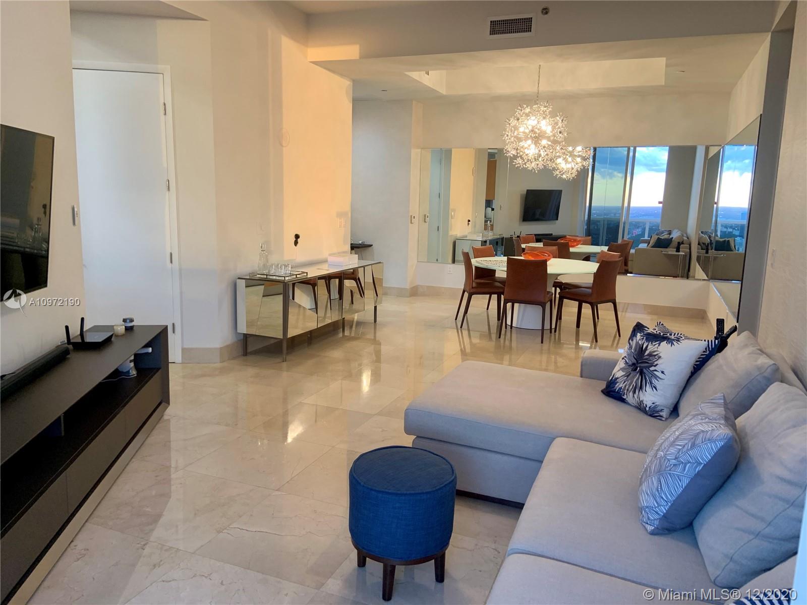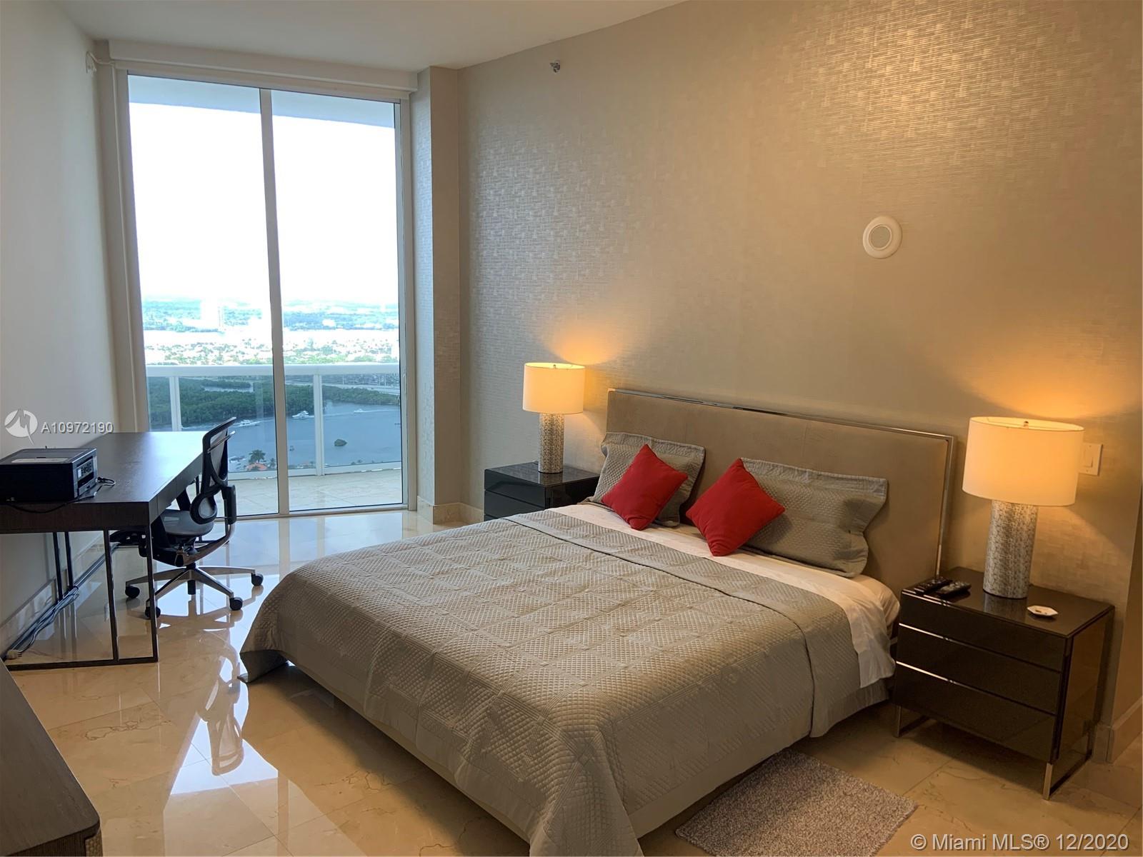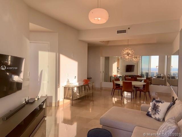 Amazing 11” height Ceilings unit on the 41st floor of the Trump Tower I. Watch the sunset every day in unobstructed and breathtaking view of intercoastal and Miami Skyline. 2bed/2bath turn key unit ( fully furnished), Floor to ceiling windows, 450 sqft balcony with access from all rooms, electric shades, marble floor, top of the line Bosch appliances. Building offer world class amenities as Beach lounge chairs and umbrella service, Fitness Center, Sauna, Business Center, Swimming heated swimming Pool and Play room. Full time concierge, 24/7 Valet.