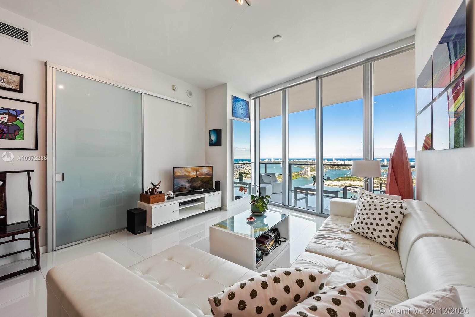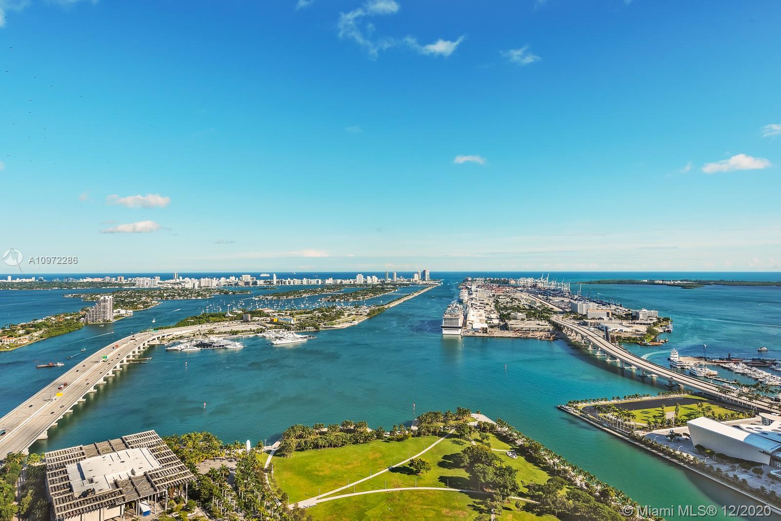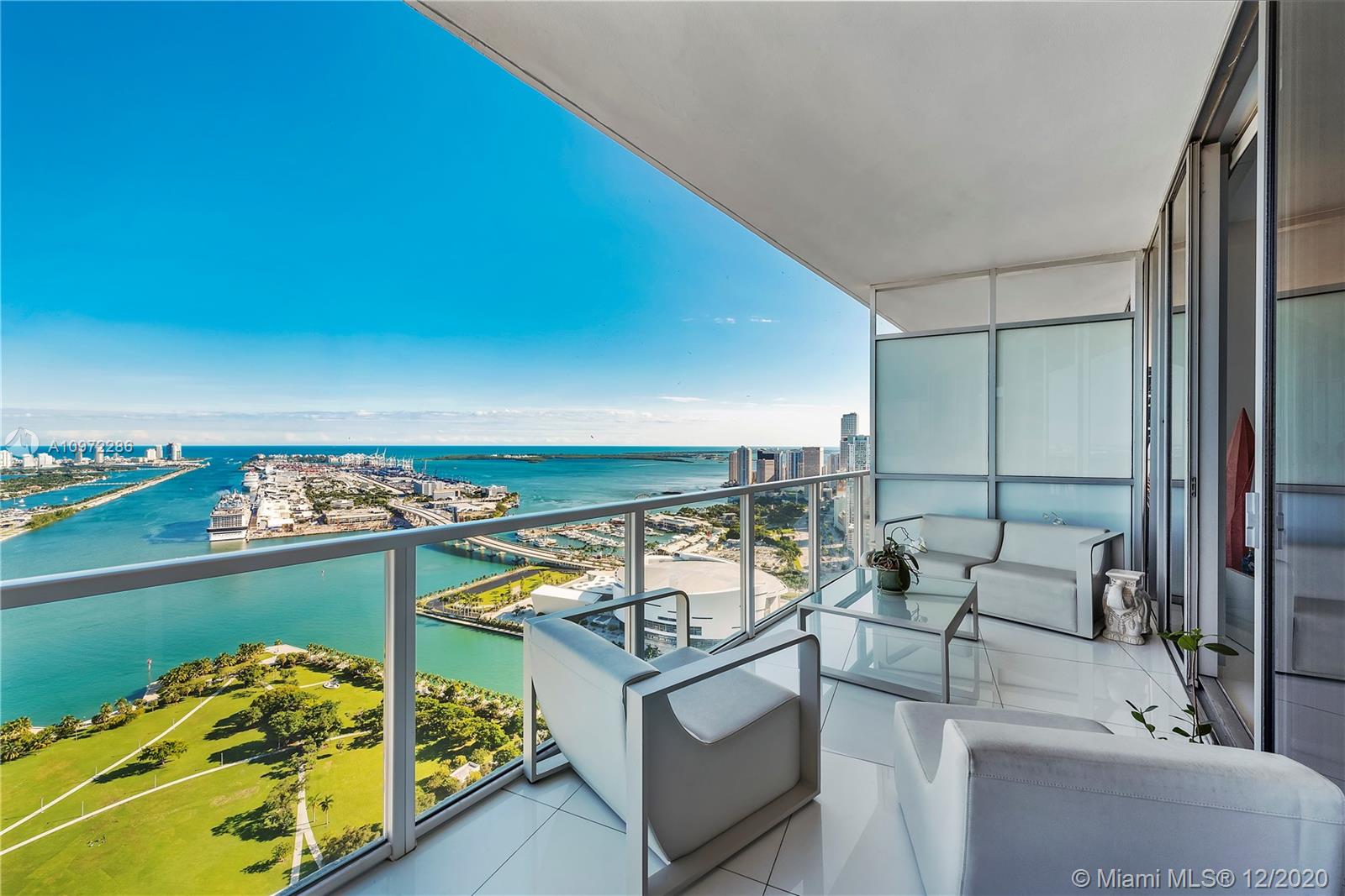 Live in luxury at Marquis Residences in the heart of Miami’s exciting downtown. This beautiful flow-thru residence has stunning views of Biscayne Bay, Port of Miami, Miami Beach, and beyond. Top of the line kitchen features sleek cabinetry and Viking appliances. The principal bedroom features a built out walk-in closet, spa like bath with dual vanity, and a glass enclosed shower. Enjoy the direct water views from your spacious terrace. Amenities include two pools, spa and fitness center, valet, and 24/7 doorman security. Walk to the PAMM, Frost Science Museum, American Airlines Arena and beautiful Museum Park. This two-bedroom unit is currently set up as a one-bedroom with den and can easily converted back.