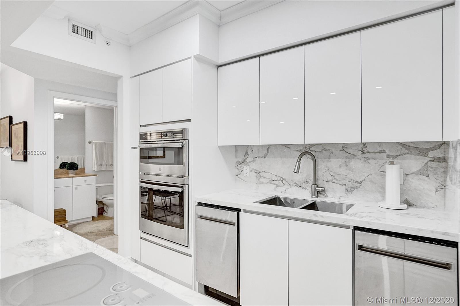 Beautiful 2BD/2BA+ den w/ocean, bay & city views featuring 1490 interior SF, marble & carpeted floors and crown molding throughout. The open kitchen features a beautiful 15’ Italian marble Island w/Monogram induction stovetop & 2 dishwashers. The primary bedroom has ocean views, walk-in closet, floor-to-ceiling windows and bath w/dual sinks. All rooms have balcony access. This unit has a new Bosch AC, new water heater, 2 storage units. The Diamonds offer unsurpassed amenities: 24hr security, valet, concierge, tennis, pool & towel service, cafe/market, room service, 16,000SF oceanside clubhouse/spa, gym, personal trainers, free exercise classes, steam rooms, saunas, indoor & outdoor hot tubs, card & party rooms, nursery, children's playroom, billiards, business center, beach attendant, more