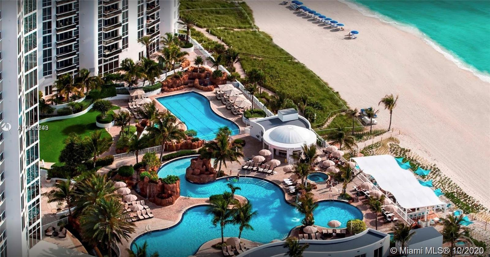 Best priced unit in Trump International! Large studio featuring two queen beds, table, desk, kitchenette, large bathroom with tub and shower, and balcony! Equipped with furniture for hotel program, use while in town and earn revenue while you are away! Great amenities including two lavish pools, tennis courts, kids club, full service spa, state of the art gym, full service beach and pools, restaurants, shops and so much more!