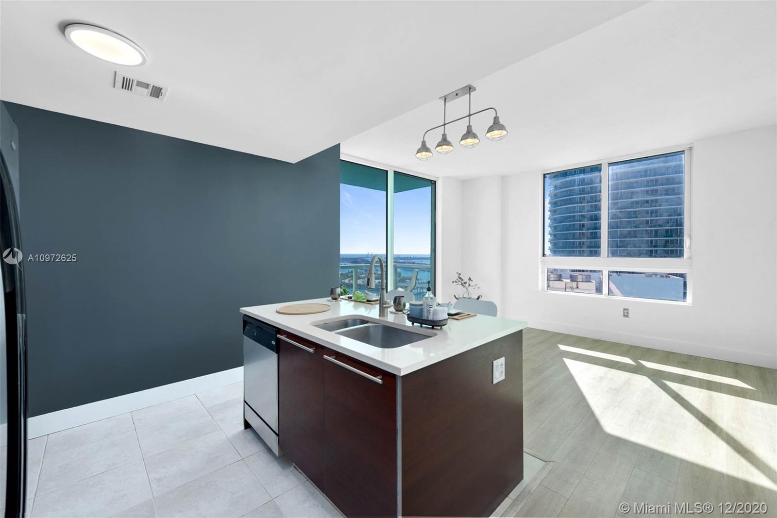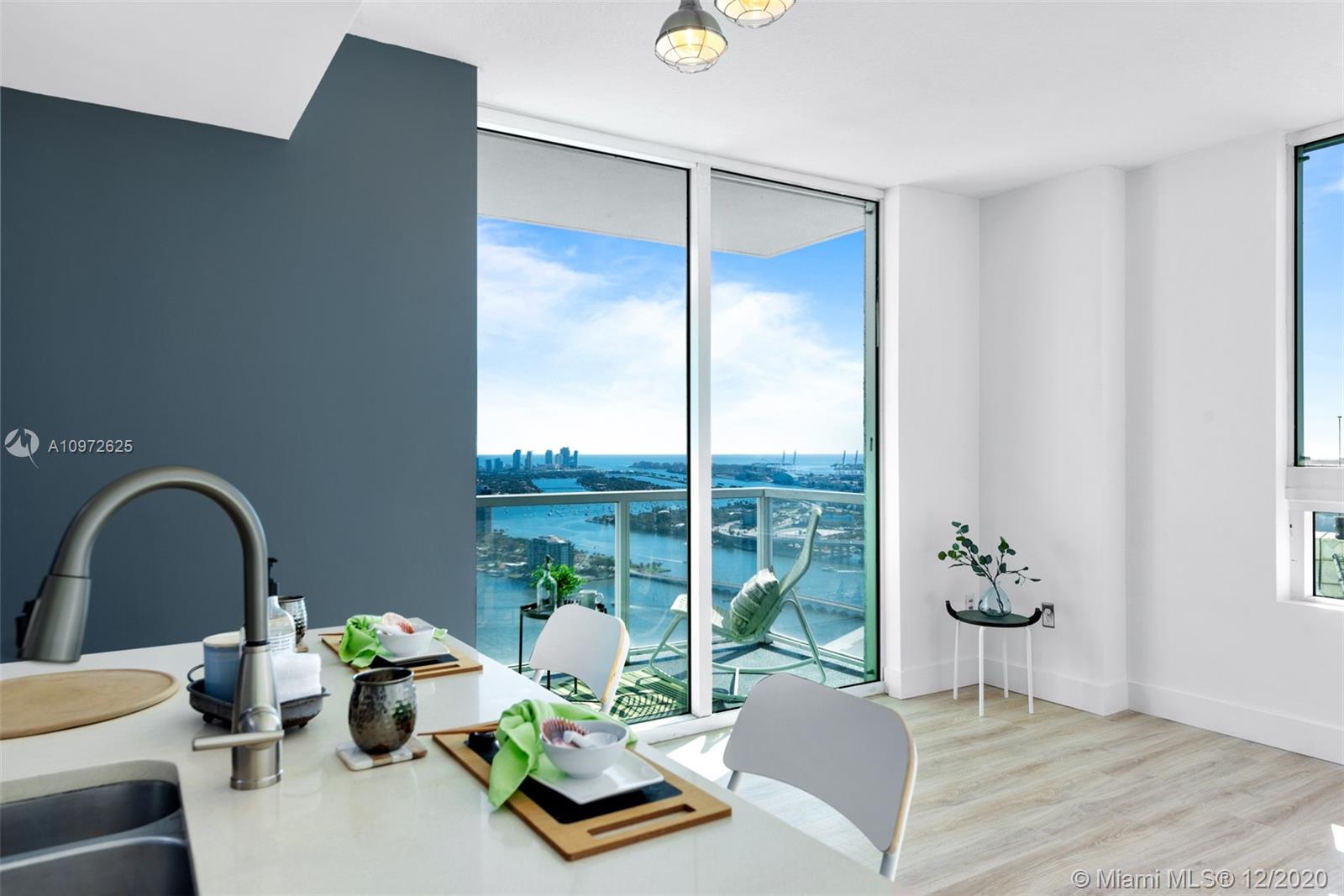 You just found the impossible to find water views from this gorgeous high floor residence. Unit features custom doors, modern light fixtures, plank style faux wood floors, European kitchen with cooking island, quartz countertops and stainless steel appliances. Building amenities include 2 heated pools, 2 story gym w/ classes available, theatre room, business center, 2 lounges/party room, sauna, jacuzzi, billiard, concierge, 24-hour security and valet. Minutes from Downtown, Brickell, South Beach and the Design District. Within walking distance of highly rated charter schools, Publix, Margaret Pace Park, many cafes and restaurants. Your chance to live in the most desirable waterfront property in Edgewater. Don’t miss out!