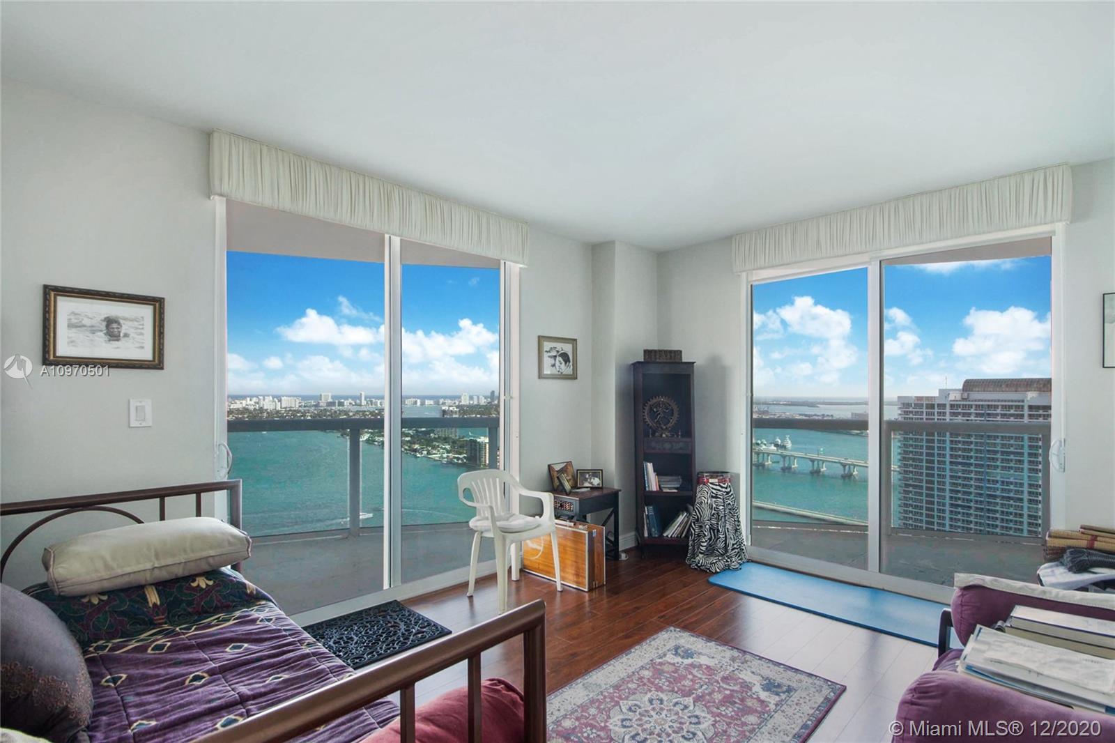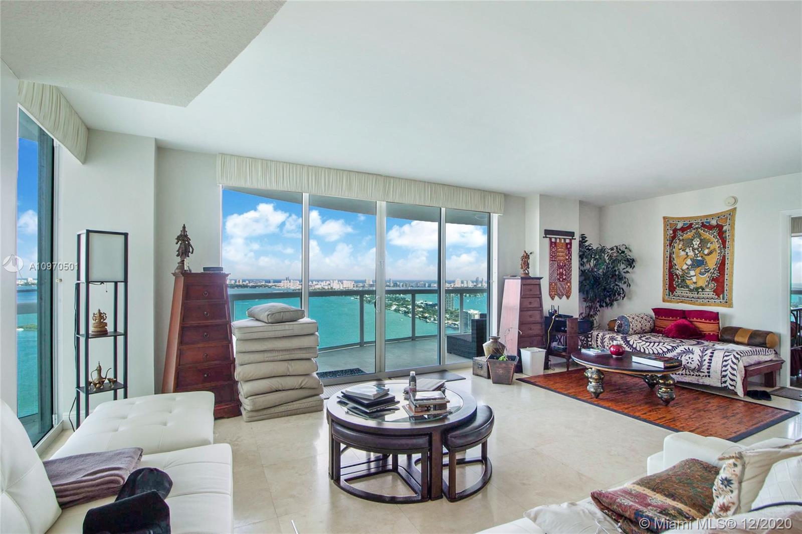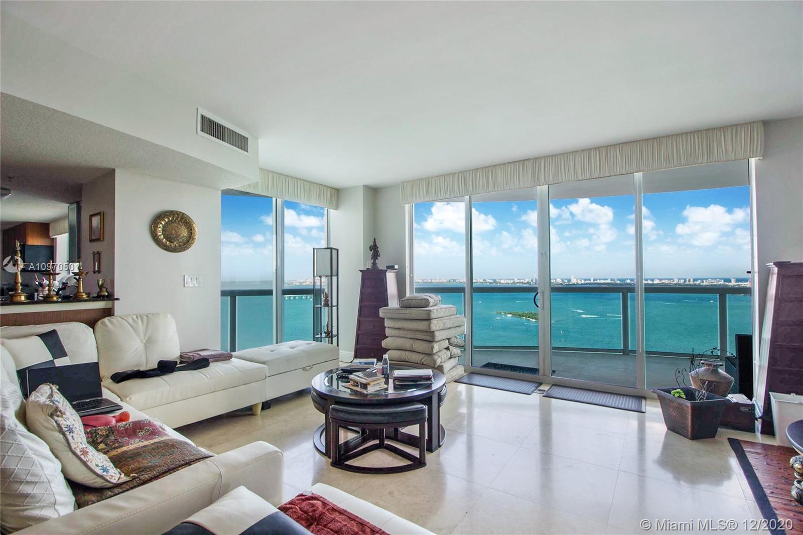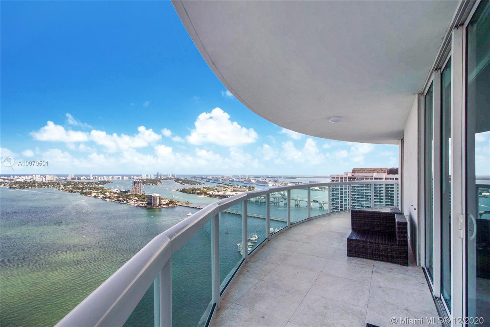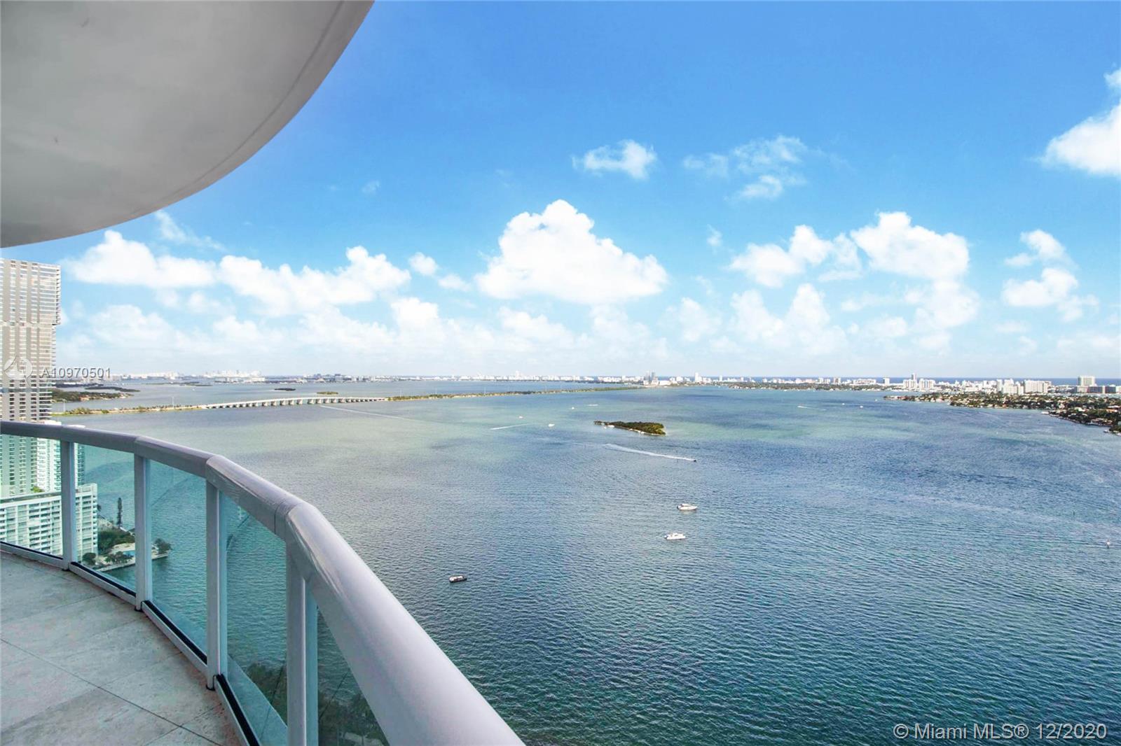 Enjoy spectacular water views of Biscayne Bay and the ocean from this direct east facing high floor 3bed/3bath 2,189 SF residence in the luxury 1800 Club. With 638 SF of terrace space, this 40th floor "01" line residence personifies Florida indoor/outdoor living. A spacious floor plan with an open kitchen allows for plenty of room to entertain while you enjoy the view. The master features a walk in closet and ensuite bath. The 1800 Club is known for its full service amenities including: valet, doorman, concierge, pool and fitness center attendant, resort style pool deck, and much more.. Walk to Margaret Pace Park. Only a short drive to Wynwood, Midtown restaurants Design District shops, and Miami nightlife.