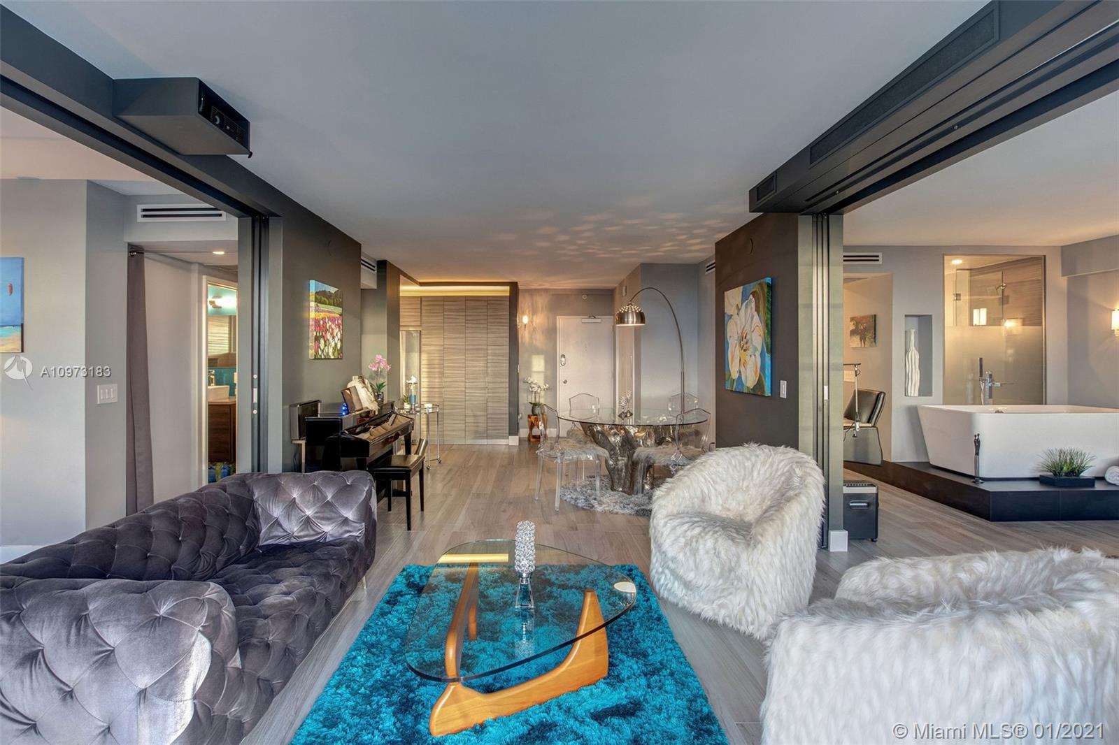 Exquisitely renovated waterfront home on Millionaire’s Row boasting breathtaking views of the Inter-coastal yet walking distance to miles of white sand beach. Meticulously planned upgrades include vanishing walls, gourmet kitchen, spa inspired master suite with soaking tub and rain shower, Italian flooring, closet organizers, sun and blackout shades. Enjoy dramatic sunsets from your Balcony while watching manatees & dolphins frolicking and boats passing by. 5600 Collins offers concierge, valet, fitness gym with aerobic area, waterside pool. One parking space assigned. and Valet. This gorgeous home is also avail Turn Key with all furniture and furnishings negotiable. Due to quality of upgrades, sale is not subject to appraisal.