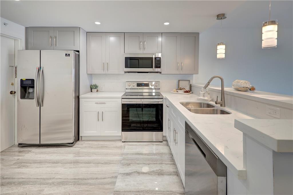 Tastefully renovated OCEANFRONT condo in the heart of Lauderdale by the Sea! This 9th floor condo has Ocean views to the North-East from each bedroom & balcony. With its own private beach access this condo is the perfect place to get away! Brand New 48 inch Porcelain Tiles throughout the unit. Along with Samsung Appliances, Hardwood Cabinetry, Quartz counters and vanities, Italian Tile in Bathrooms, Frameless Shower Doors, and more! Walking distance to shops, grocery, and various restaurants. Leisure Towers is a great location, just a short drive to downtown Fort Lauderdale or Pompano Beach. This condo is truly turn key, call today for a private viewing! WASHER/DRYER IN UNIT!