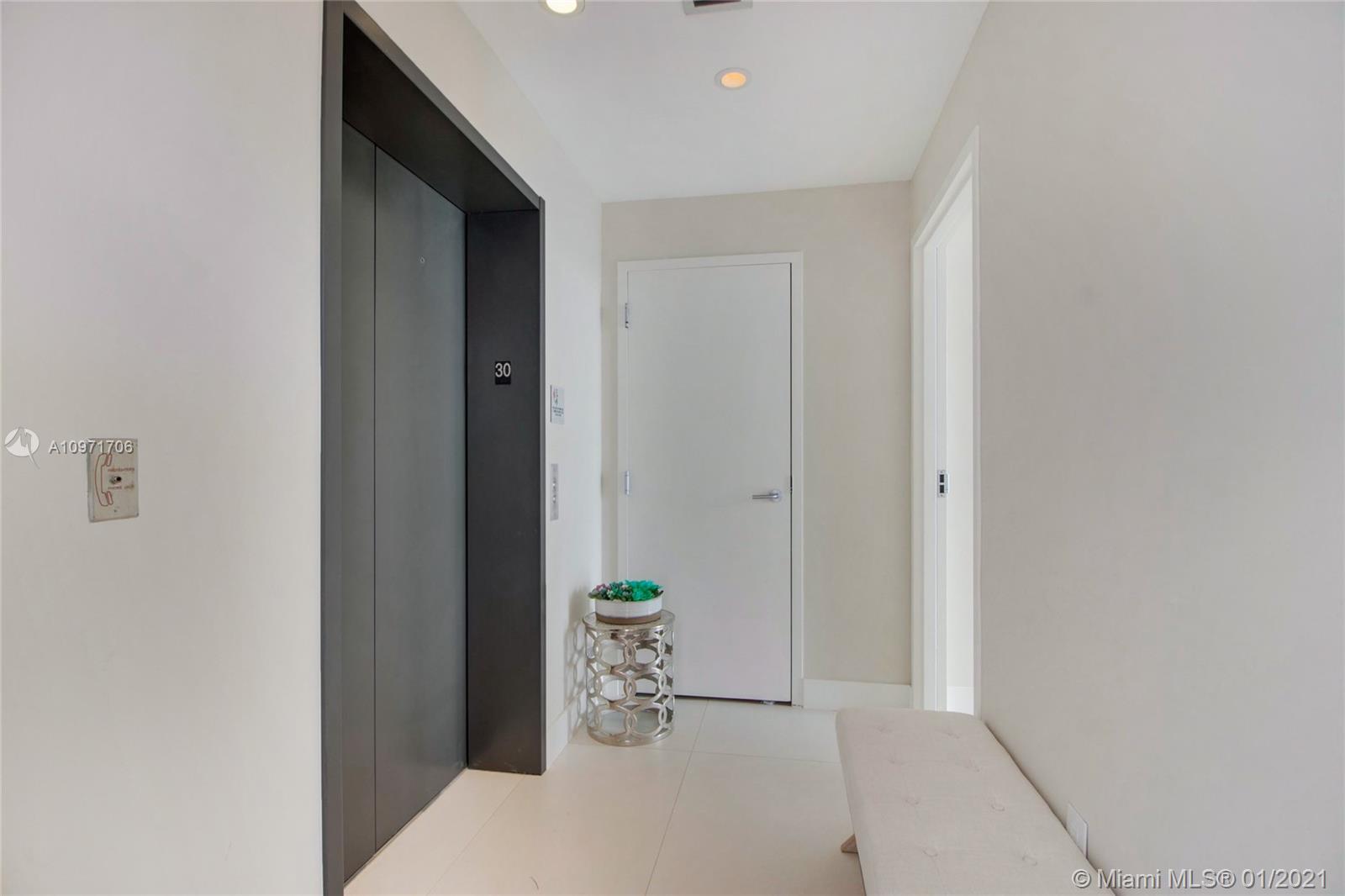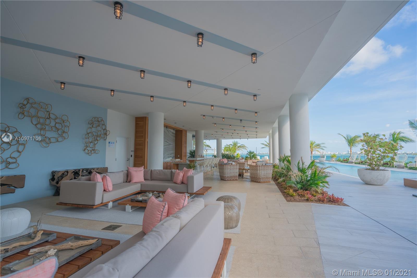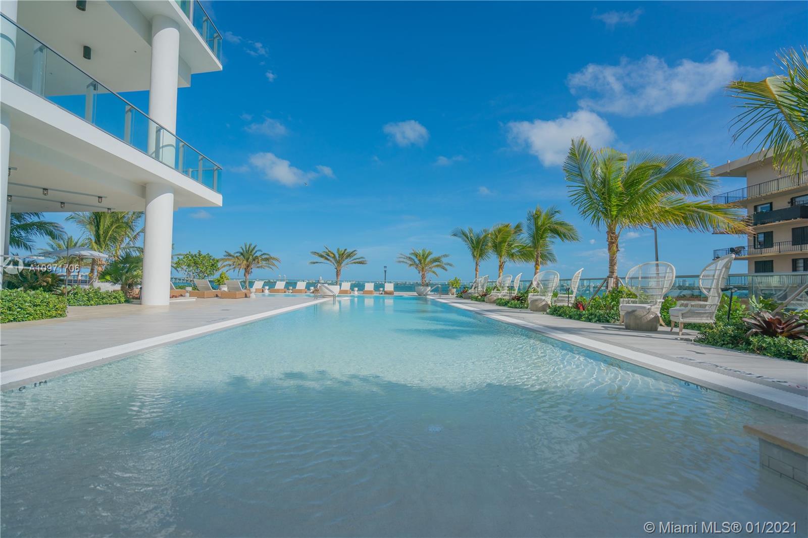 Beautiful upgraded 1 bed + den (enclosed with murphy bed) and 2 baths at luxury building. Professionally decorated by Brazilian designer Myrna Porcaro. Upgrades include kitchen island and wine fridge, wallpaper, vertical garden pillar, murphy bed, & electric shades. Tile floors throughout. Beautiful VIEW OF BISCAYNE BAY, Edgewater & Downtown Skyline, and sunset view. Private Elevator with private foyer entrance; Snaidero Kitchen with Miele appliances; 10 ft ceilings with floor to ceiling glass windows; spacious balcony. Amazing AMENITIES with a Beach Club, elevated sand/beach area, bayfront pool, sauna & steam room, 2 massage rooms, tennis & basketball courts, beach volleyball court, state of the art gym, 6th floor with 2nd pool, bbq area, 2 party rooms. Assigned parking (#233)