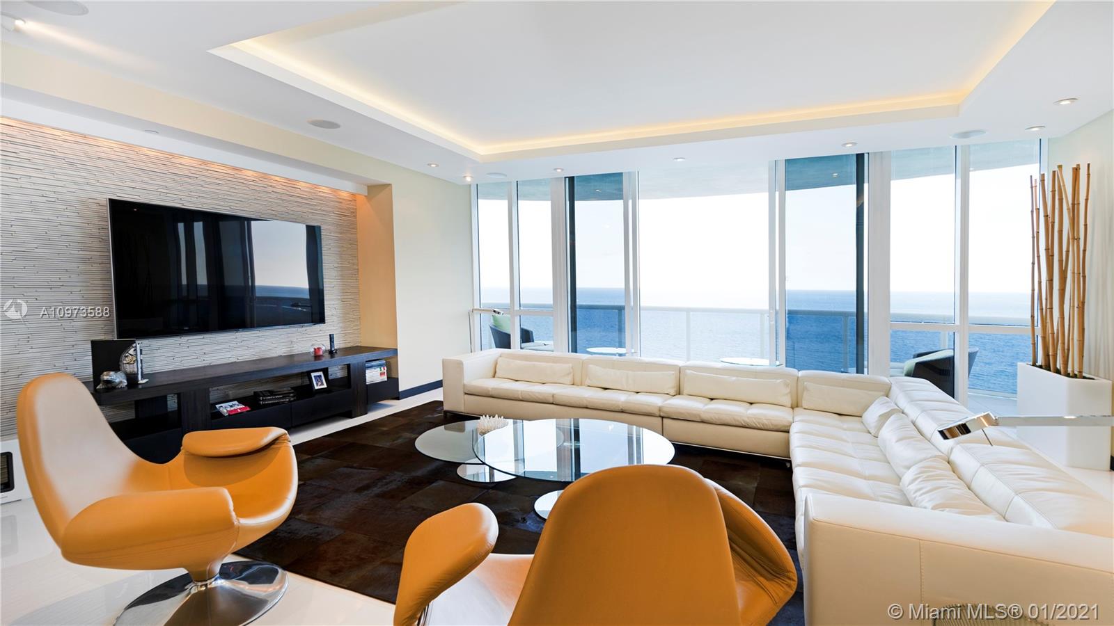 Direct Oceanfront unit, best line in the building "01". Beautiful wrap-around direct ocean view residence with deeded beach cabana for sale for $250,000. 2,768 SqFt of beautifully interior space and 395 SqFt of terrace area with endless coastal views. Spacious 3 bedroom/3.5 bathroom with large living and dining areas, 11 ft floor-to-ceiling impact windows, private elevator, 40 ft of oceanfront balcony. Oversized master bathroom with jacuzzi, gourmet kitchen with Italian cabinetry, Miele and Sub-Zero appliances. Exclusive oceanfront property with its own restaurant, pools, spa, fitness center, business center, beach service, concierge, 24 hr valet. Located next to Haulover Beach Park, short distance to Bal Harbour. 2 assigned garage spaces for sale at $100,000.