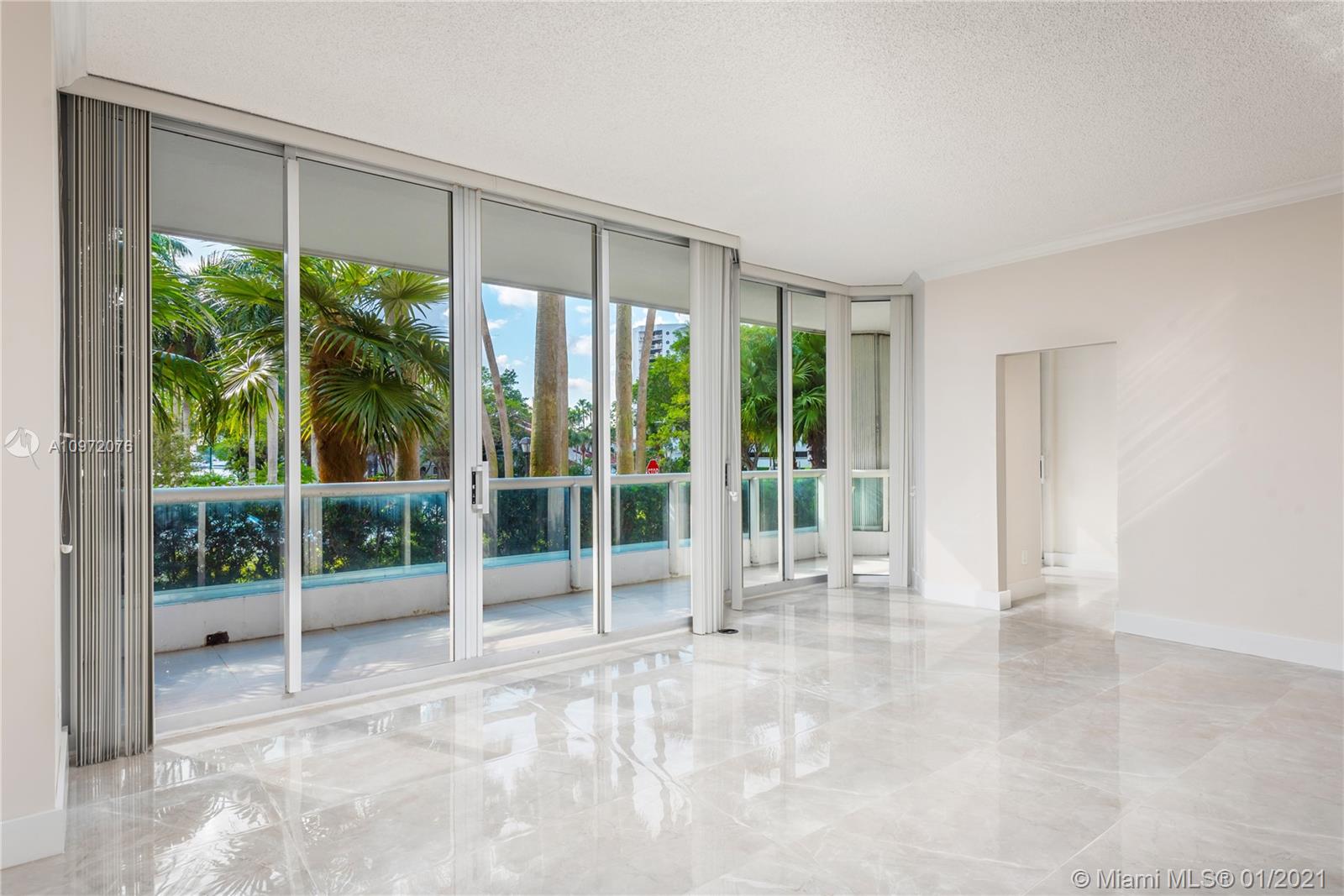 Nicely Renovated First Floor Condo At The Point - North Tower. With a Marina View of the Waterways. This is one of the most beautiful extra large one bedroom apartments in the Building. Brand New Ceramic Floors throughout. Updated Kitchen, Recently Painted, an almost Sound Proof Home. Beautifully Landscaped, with Floor to Ceiling Glass Doors and Windows across the entire exterior side, with an enormous Full Length Patio for BBQ, Bird Watching, and seeing the boats at the Waterways Marina. The building personnel are always willing to accommodate your needs, very helpful. Valet Parking, and two Garage Spaces included. Perfect for your home or as a rental. No need for an Elevator, this condo is a few steps from the Gorgeous Lobby. Keep your boat at the Full Service Marina with Restaurants.