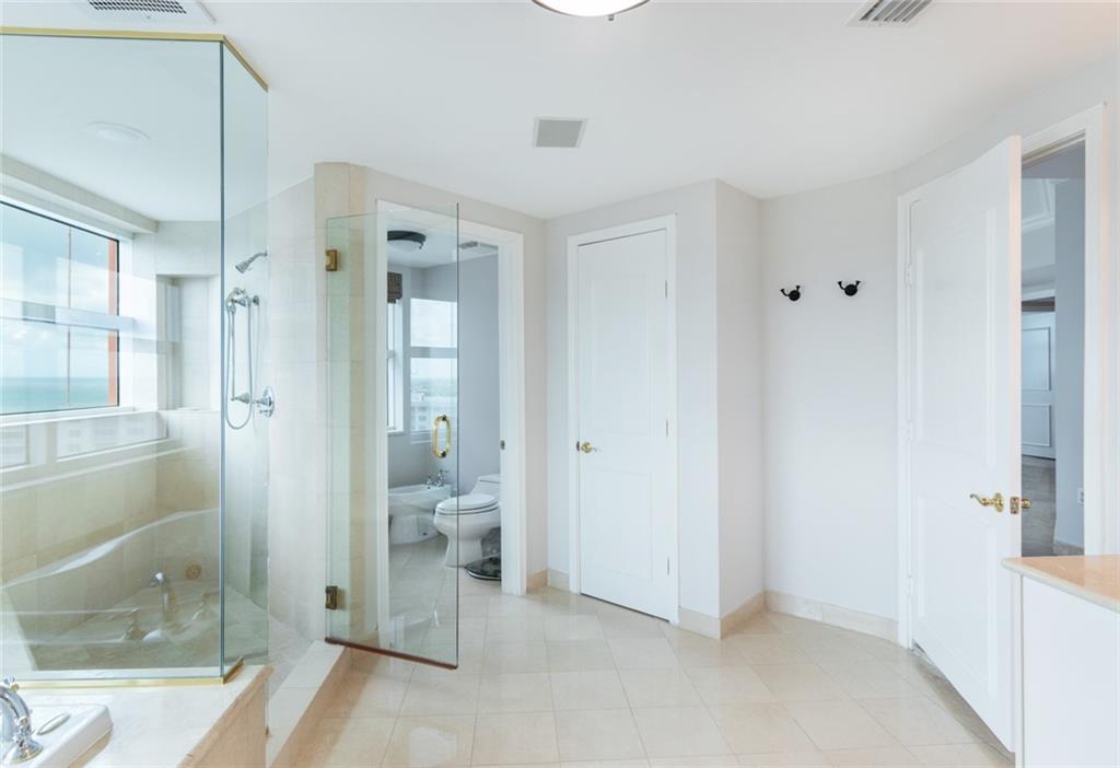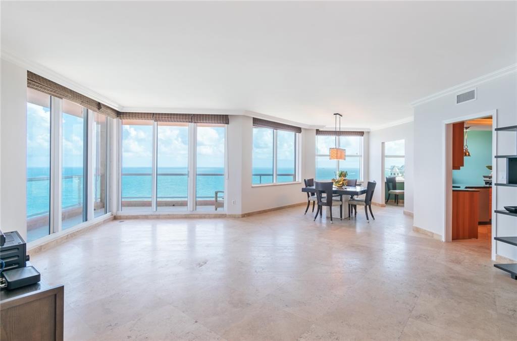 Southeast corner unit, North, and West Exposures Ocean Intracoastal & City. Every room has an amazing view of the ocean. 2 contiguous garage spaces near the elevator. Large storage area. 2 wrap-around balconies. Elevator to a private foyer. High ceilings. Large master suite and master bath. Oversized walk-in closet. Marble flooring throughout. 5-star Resort amenities include billiards, tennis court, 2 pools, fitness center, sauna, racquetball squash court, game room, conference room, ballroom with catering kitchen. Close to restaurants and shopping.