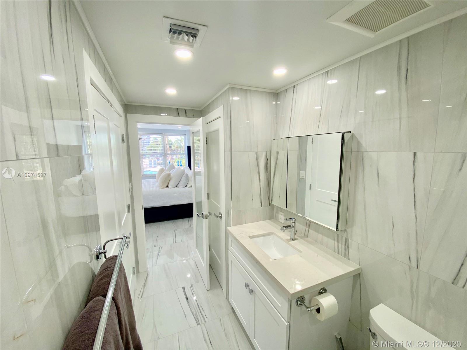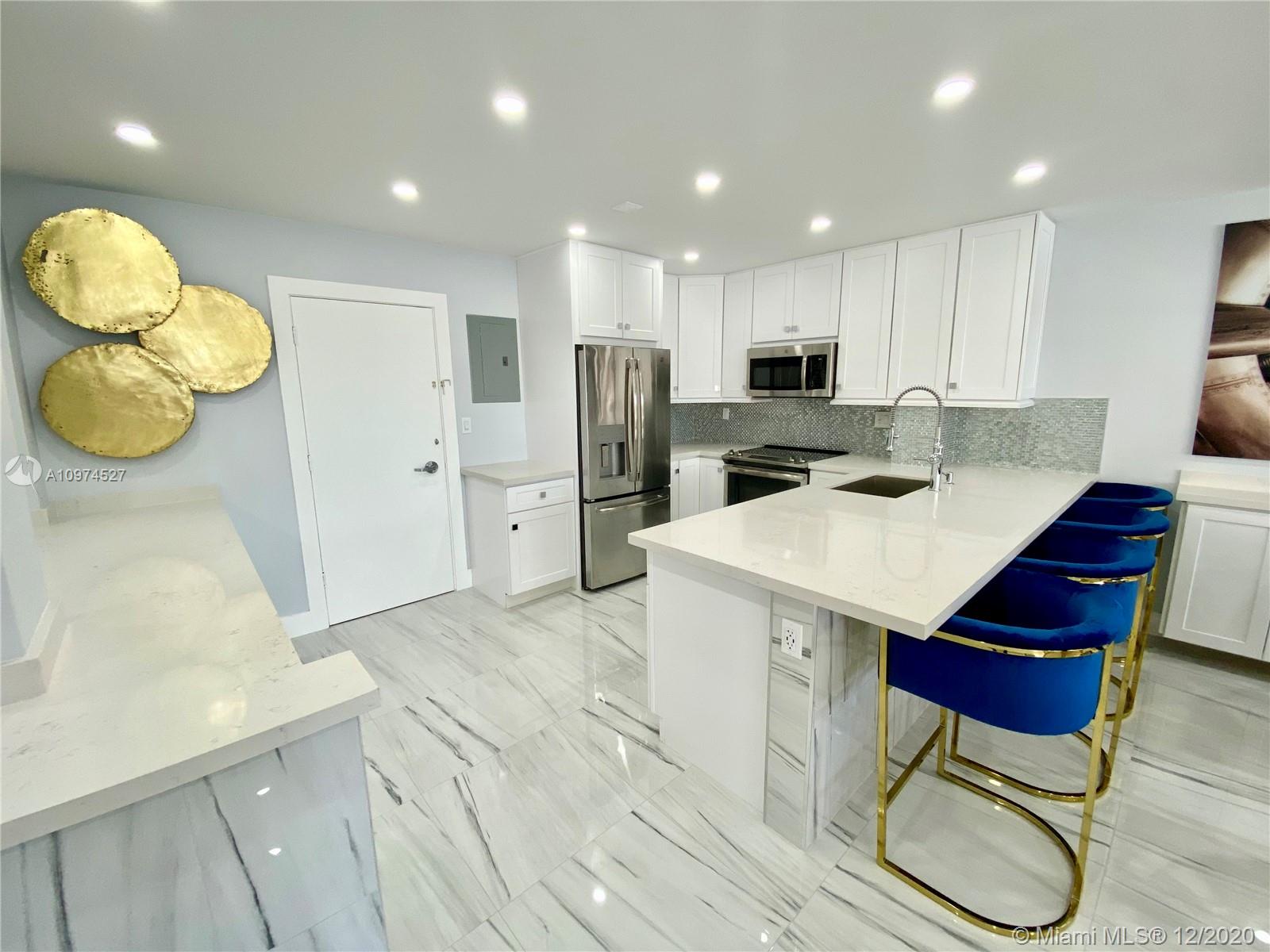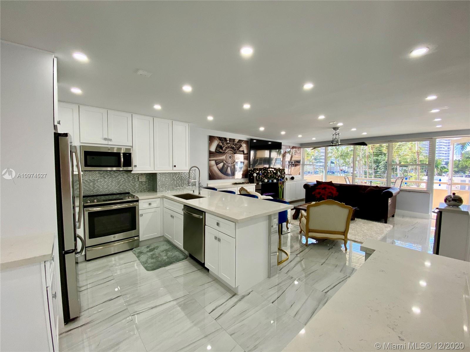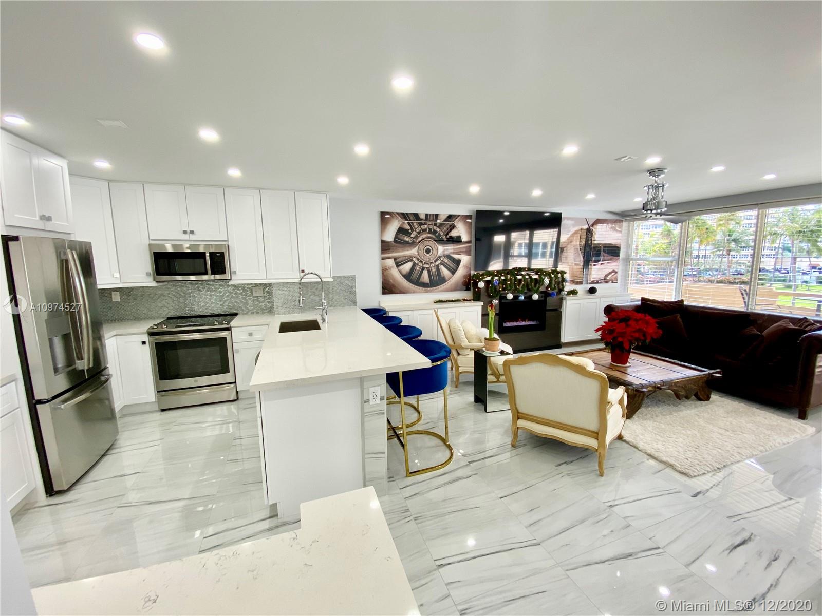 Stunningly remodeled 1bed/1bath apartment in sought after Coral Ridge Towers East, Fort Lauderdale. This unit was completely redone and shows like a model: gorgeous open kitchen with quartz counter tops; spacious living room with modern fireplace; LED recess lighting throughout; superb imported porcelain tile floors. Relaxing views of heated pool and garden from large balcony. Secure building with 24-hour manned lobby. Amenities include: exclusive clubhouse on the inter-coastal waterway, gym, library, laundry room on each floor. Fort Lauderdale beach across the street. Close to shops, restaurants on the Galt Ocean Mile and more. 55+ co-op community, no pets, no rentals. Credit score required 700+. Annual income required $45,000+. Owner will pay assessment in full at closing.