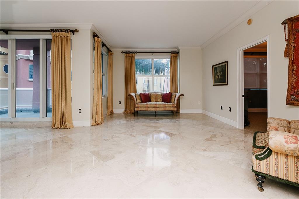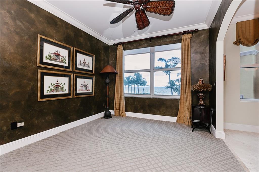 BEST OPPORTUNITY ON THE BEACH !This tastefully appointed 2 bed/2 bath corner unit is located in The Palms, a luxury oceanfront residence offering Private Beach access, Beach Attendants, Salt Water Heated Pool, 2 Story Full-Service Gym, Private Lounge, 24-Hour Security and Valet Services, Lap Pool, Racquetball Courts and Tennis. A semi private elevator opens to your foyer entrance ; 10" Volume Ceilings, Hurricane Impact Glass throughout, Marble Flooring, Venetian plastered walls, Crown Molding, Expansive Kitchen with Italian wood cabinetry and high end appliances, gorgeous Travertine tiled master bathroom with Jacuzzi tub and a vast walk in shower. The guest bedroom is used as a separate living area but can easily be converted back into a bedroom or office. Building is pet friendly.